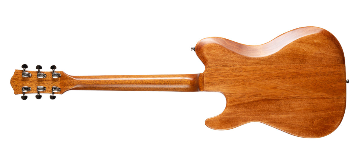 Presenting a new breed of single-cut guitars, which combines all the best elements of the Radiator and the Stadium into one: The Radium! It offers some unique features compared to the more traditional single cutaway solid-bodies, such as a short-scale (24 ¾”) set-neck and a 3&3 headstock design for comfortable playing and bending. The Radium also comes equipped with a H-S-H pickup configuration for a multitude of tonal possibilities, and a re-invented vintage-style control plate, which has a Volume, Push-Pull tone, and an angled Super 5-way switch that follows the natural sweep of your right hand for easy pickup selection. The guitar is voiced with Custom Godin Nickel-Covered Humbuckers for vintage tones, with the addition of a Godin Custom Cajun Nickel Single Coil in the middle. The Winchester Brown model has an eye-catching finish, worthy of a classic/aged vintage guitar. The Radium Winchester Brown…taking it up a notch! Specs Body:Mahogany centre with Canadian Laurentian Basswood wing Neck:Mahogany Set-Neck Fingerboard:Rosewood Fingerboard Radius:12" (304.8 mm) Scale Length:24.75" (628.65 mm) Nut Width:1.6875" (42.8625 mm) Nut Type:Graphtech Frets:22 Machine Head Ratio:Bass side 18:1, Treble side 26:1 Neck Pickup:Custom Godin humbucke:Middle Pickup Custom Cajun Nickel Bridge Pickup:Godin Custom Humbucker Bridge and Tailpiece:Waparound bridge Controls:Super 5-way Switch, 1x Push-Pull Tone, 1x Volume Color:Winchester Brown H.D.R:Not Included Finish:Semi Gloss String Set:E10 String Guages:.010 .013 .017 .026 .036 .046 Case:Gig Bag