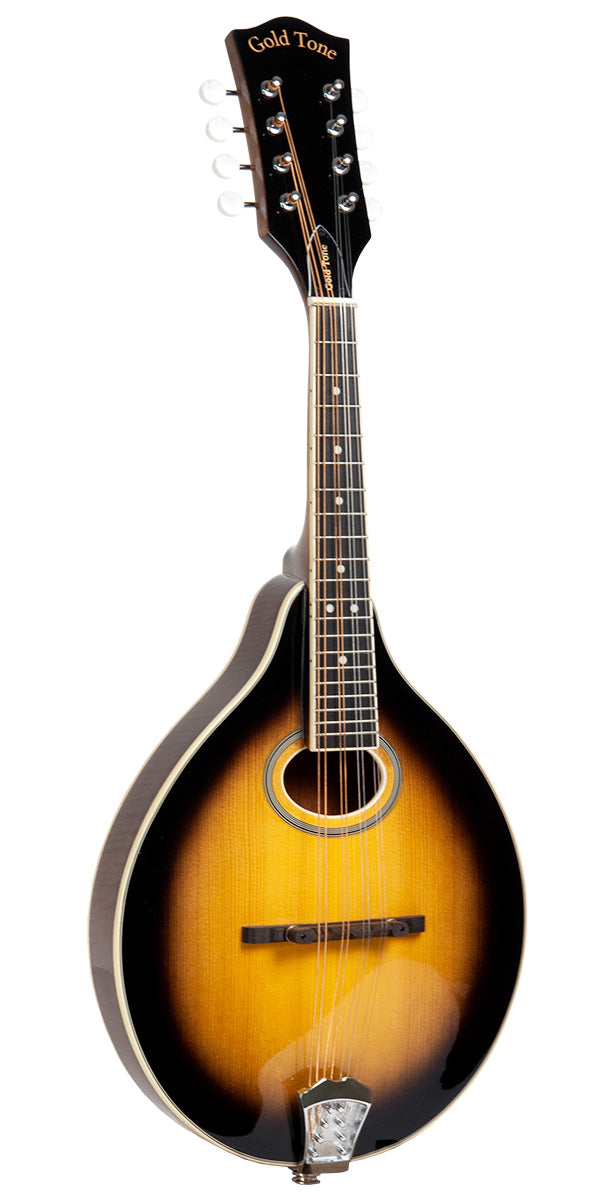 This solid-top A-style mandolin evokes the hugely popular instruments played by thousands of mandolin enthusiasts in clubs and orchestras during the early twentieth century. The sunburst finish on its curly maple back, sides and neck and on the carved solid spruce top is a tribute to those historic mandolins from the Midwestern US, while the installed transducer pickup prepares it for the demands of a modern musician. The fretboard is bound with white celluloid and the period-correct bridge is adjustable for height. Gold Tone's expert shop setup guarantees that each GM-50+ has excellent tone and playability. Available as left-handed model.