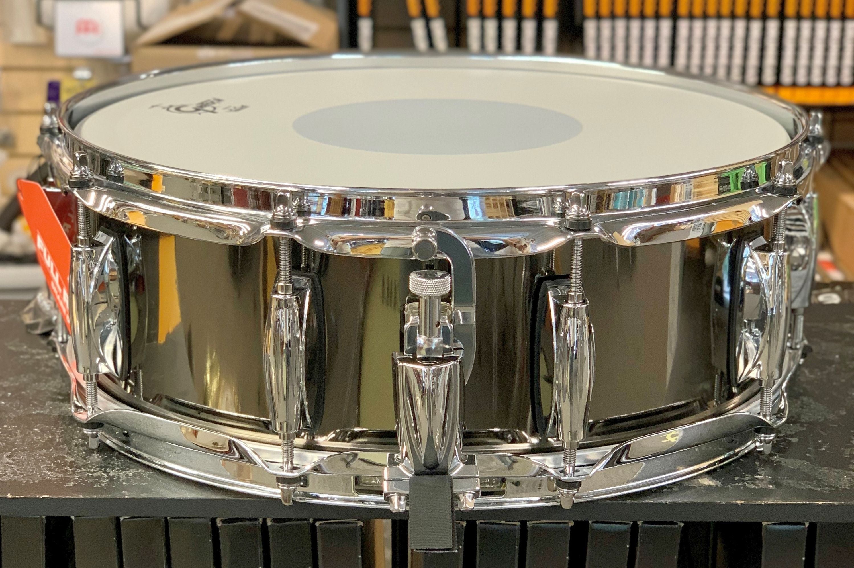 Our Black Nickel over Steel snare drum offers an ideal balance of power, sensitivity, beauty, and value all in one snare drum. Taking advantage of its wide tuning range, you can achieve either a loose, slow and dry sound character or a very sharp, bold and bright attack. It features 2.3mm Triple flanged hoops, an adjustable throw-off, 20 strand snare wire, Remo® drum heads, and 45 degree bearing edges.
