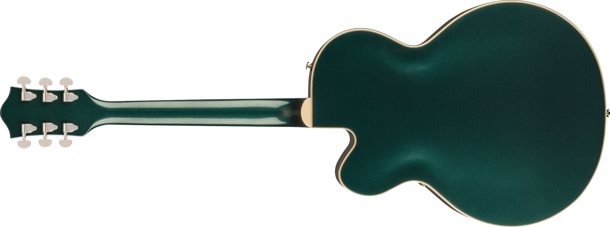 The G2420 Streamliner Hollow Body Single-Cut with Chromatic II tailpiece features a fully hollow arched maple body with parallel tone bars for rich fullness, deep resonance and "big-body sound."