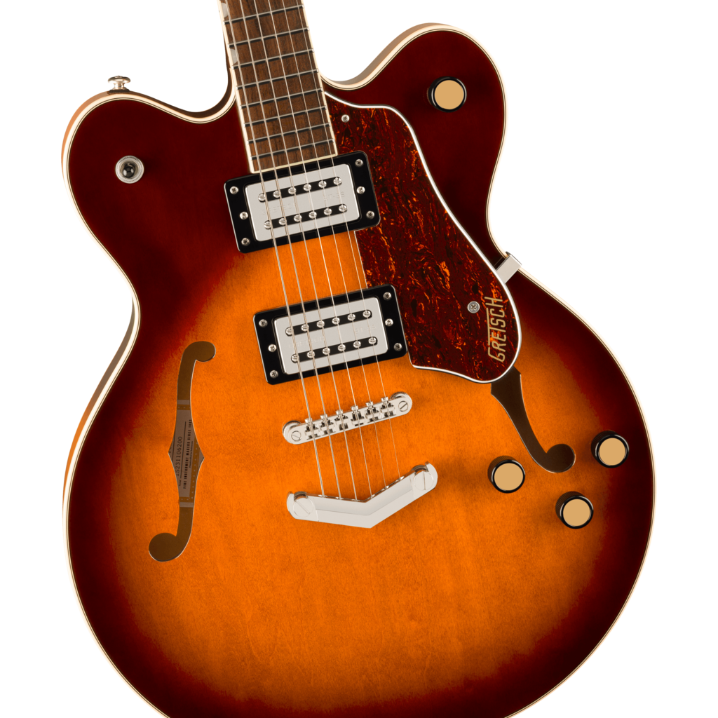The G2622 Center Block features an arched maple body with an all-new center block design under the hood. This new center block is designed to balance lightweight comfort with a full, rich sound and increased presence; resulting in improved attack and sustain, and excellent feedback rejection, in a package that won't weigh you down.
