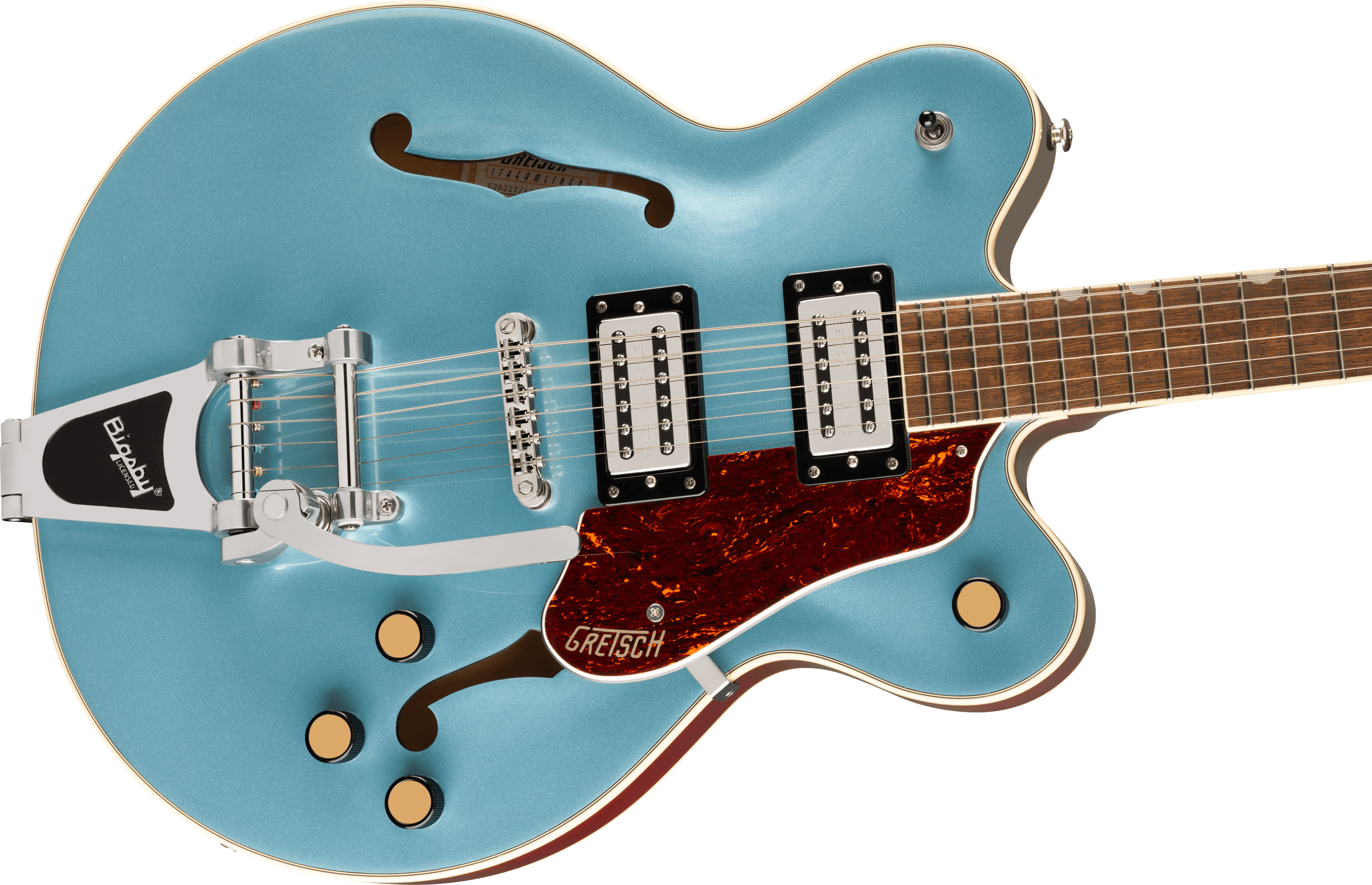 The G2622T Streamliner Center Block Double-Cut with Bigsby® bursts into the modern era with powerful sound and style. The sleek G2622T is designed for the guitarist who demands more than the mundane from an instrument - more performance, more style and most importantly, more volume - while retaining everything you expect from a Gretsch.