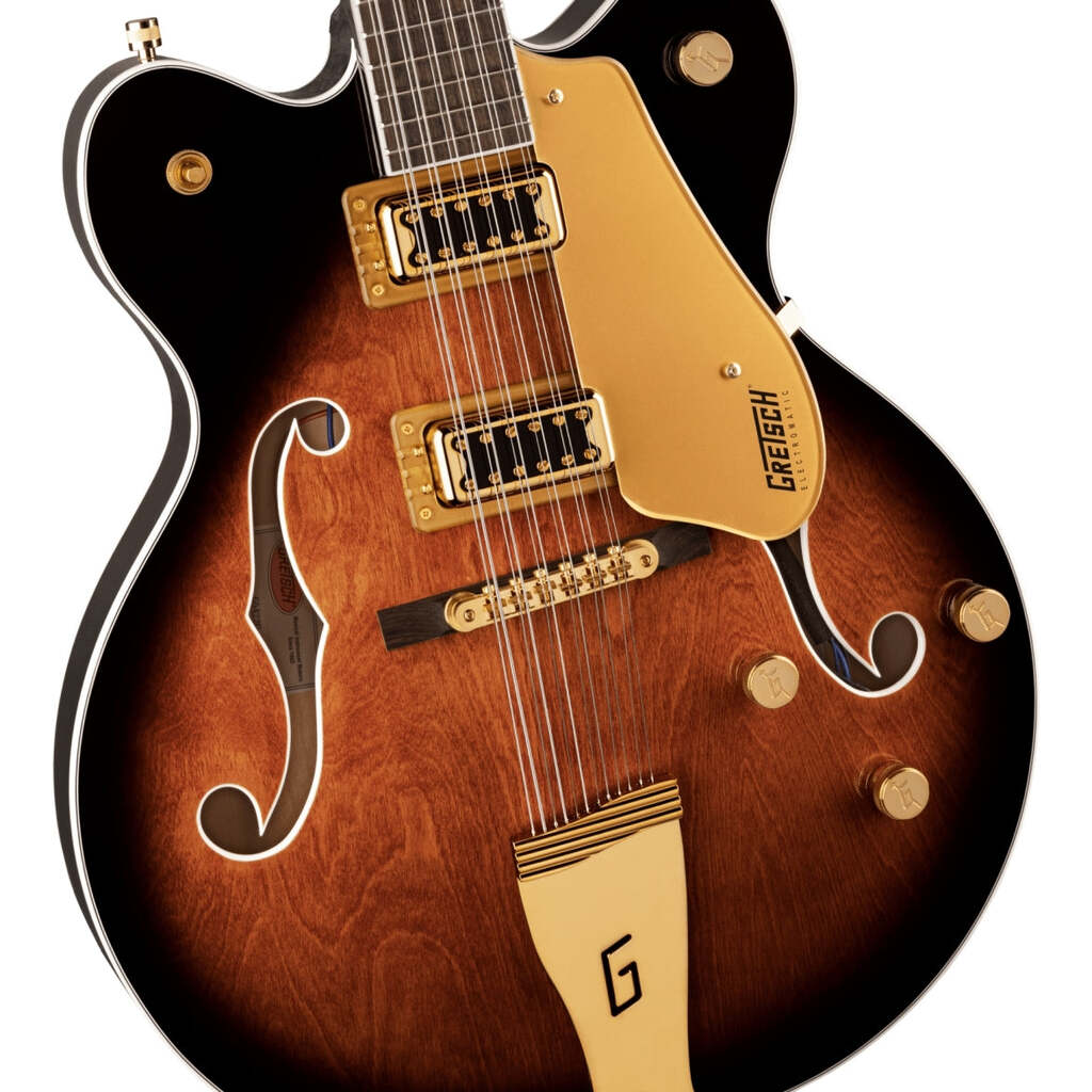 Alive and loud, the G5422G-12 is available in Single Barrel Burst or Walnut Stain finishes with gold hardware and gold pickguard.