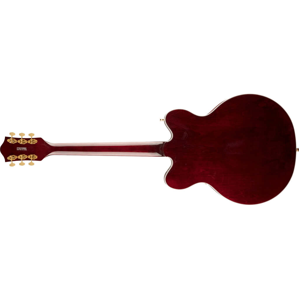 The G5422TG Electromatic® Classic Hollow Body Double-Cut with Bigsby® and Gold Hardware features a laminated maple body with vintage-inspired perimeters and refined arches, as well as all-new trestle block bracing to help reduce unwanted feedback. By increasing rigidity and contact between the top and back of the body, the new trestle block design also results in the sound having a faster attack with more focus, snap, and increased sustain. Coupled with all-new FT-5E Filter’Tron™ pickups, this hollow build’s voice explodes with huge full-bodied punch, classic chime and enhanced presence, clarity and note definition.