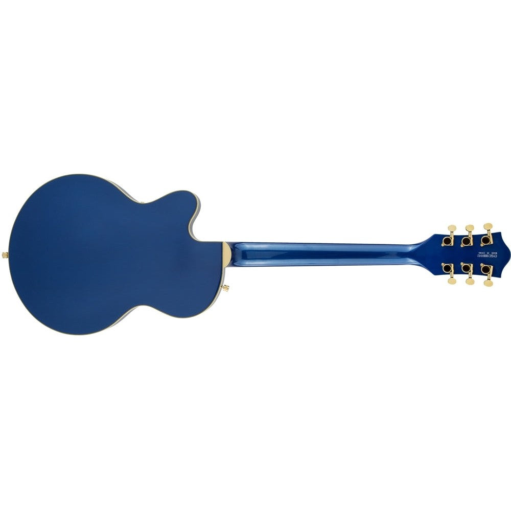 This guitar boasts stage-stealing style with a stunning Azure Metallic finish and gleaming gold pickguards and hardware, including the Bigsby® B70 vibrato tailpiece, anchored Adjusto-Matic™ bridge and G-arrow knobs.