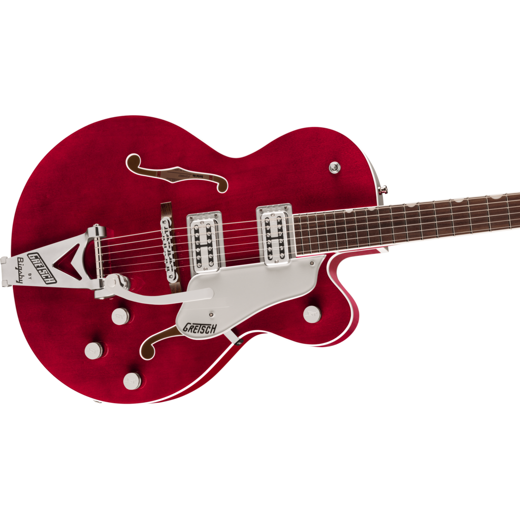 Our all-new Arc-Tone™ bracing is our most advanced bracing system to date. Featuring torrefied maple tone bars with arc-shaped spruce support braces located underneath the bridge area, this combination of materials and design provides enhanced sustain, crisp note attack and excellent feedback control while retaining the open voice players expect from a Gretsch hollow body guitar.