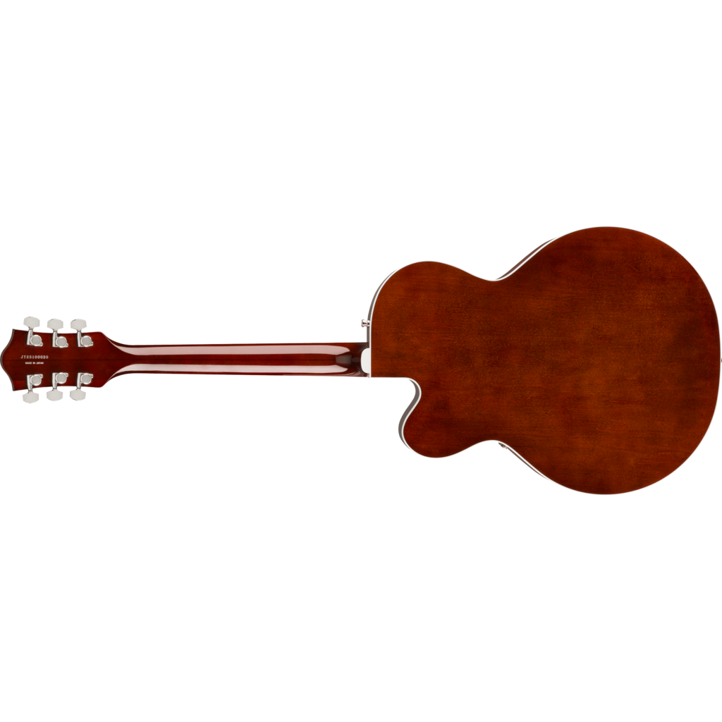 Our all-new Arc-Tone™ bracing is our most advanced bracing system to date. Featuring torrefied maple tone bars with arc-shaped spruce support braces located underneath the bridge area, this combination of materials and design provides enhanced sustain, crisp note attack and excellent feedback control while retaining the open voice players expect from a Gretsch hollow body guitar.