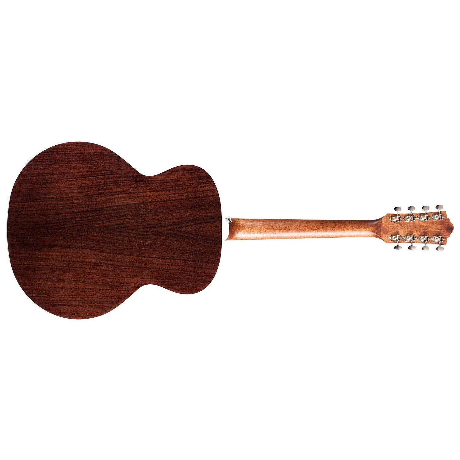 The BT-258E Deluxe 8-string Baritone offers a melodic layering of low-end harmony for enchanting , harp like sound. Combining Guild's historically large jumbo body shape and their legacy of pressed back construction, the BT-258E Deluxe boasts a deep, full-frequency baritone voice complemented by two octave strings for added sparkle. the arched rosewood back projects whole low-frequencies, while the solid spruce top ensures the high-frequency octave strings blend in gorgeously for a symphonic tone. The low end is great for playing in an ensemble or for playing standalone. This 8-string baritone is tuned B-E-a-A-d-D-F#-B, five steps down from a standard guitar. Deluxe appointments include rosewood back and sides, bound neck and body, Fishman GT-1 pickup system, and a perfectly glossed polyurethane finish. SPECIFICATIONS: Body Body Shape F - Jumbo Body Top Solid Sitka Spruce Top Bracing Pattern Scalloped X Soundhole Diameter 3 7/8" (98mm) Rosette Mother-Of-Pearl / ABS Top Purfling Inlay Black / White / Black / White ABS Body Sides Rosewood Body Back Arched Rosewood Body Binding White ABS Neck Neck Material Mahogany Scale Length 27" (686mm) Neck Shape C Shape Nut Width 1 3/4" (44.5mm) Neck Thickness 1st Fret 20mm Neck Thickness 9th Fret 24mm Truss Rod Dual Action Truss Rod Wrench 4mm Allen Key Fingerboard Material Pau Ferro Fingerboard Radius 16" (406mm) Fingerboard Inlays 5mm Dots - Mother-Of-Pearl Frets Total 20 Fingerboard Binding 1.5 mm White ABS Finish Color Natural (NAT) Finish Gloss Polyurethane Hardware Bridge Material Pau Ferro Bridge String Spacing 2 1/4" (56mm) Bridge Pins Ivory Colored Plastic with Black Dot Saddle Material Compensated Bone Hardware Finish / Plating Nickel Nut Material Bone Tuning Machines Guild GBB1 Butterbean Tuning Machines 16:1 Nickel Endpin Strap Button - Nickel Pickguard Tortoiseshell Electronics Electronics Guild/Fishman Sonitone GT-1 with Volume and Tone controls Other Strings D'Addario EXP23 - Coated Phosphor Bronze (.016-.070) & Octave Strings (.012 & .014) Included Case Case Sold Separately Upper Bout Width 12 1/2" (318mm) Lower Bout Width 17" (432mm) Body Depth Upper Bout 4" (101mm) Body Depth Lower Bout 4 3/4" (121mm) Body Length 20 3/4" (527mm) Overall Length 43 3/4" (1111mm) *This is a running spec change to comply with CITES regulations.