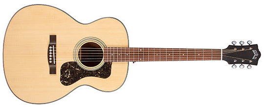 The OM-340 Natural delivers Guild’s quintessential acoustic tone, now available at a newly accessible price point. Without sacrificing quality, the OM-340 features solid Spruce top construction with Mahogany back and sides for a bright and balanced voice with long sustain. Its OM body style will be immediately familiar to players desiring a comfortable, mid-sized acoustic that’s ideal for either strumming or finger picking.