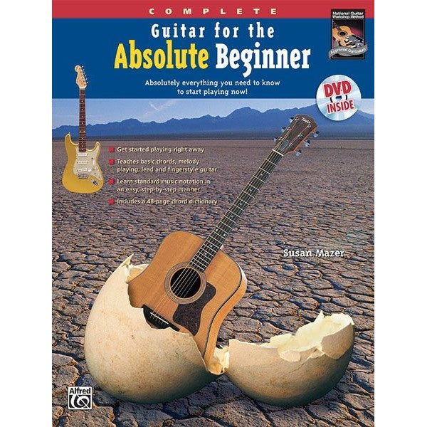 Do you want to play the guitar but are afraid you need to take lots of lessons? Worry no more! This book teaches the complete beginner everything needed to start playing right away. The music lover who has never even held a guitar will play easy songs immediately, learning everything from chord strumming and fingerpicking to basic lead guitar and improvisation. There is even a chord dictionary with lots of chords to help you play from sheet music. The DVD gets you started with many of the techniques found in the book and also contains audio tracks for every example so you can play along. Susan Mazer’s warm and encouraging style will motivate even the most casual hobbyist to learn---so stop waiting and start playing now!