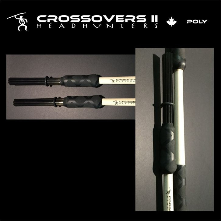 Crossovers combine the concept of bundled rods with that of a regular maple drum stick. After lathing the unique shaped shaft of the Crossover, we drill a centre hole down to a bulb area. We insert the material such as poly or bamboo rods and finish the stick with our user friendly ‘Grip Control’ which features our double textured ‘X’ pattern feel.
