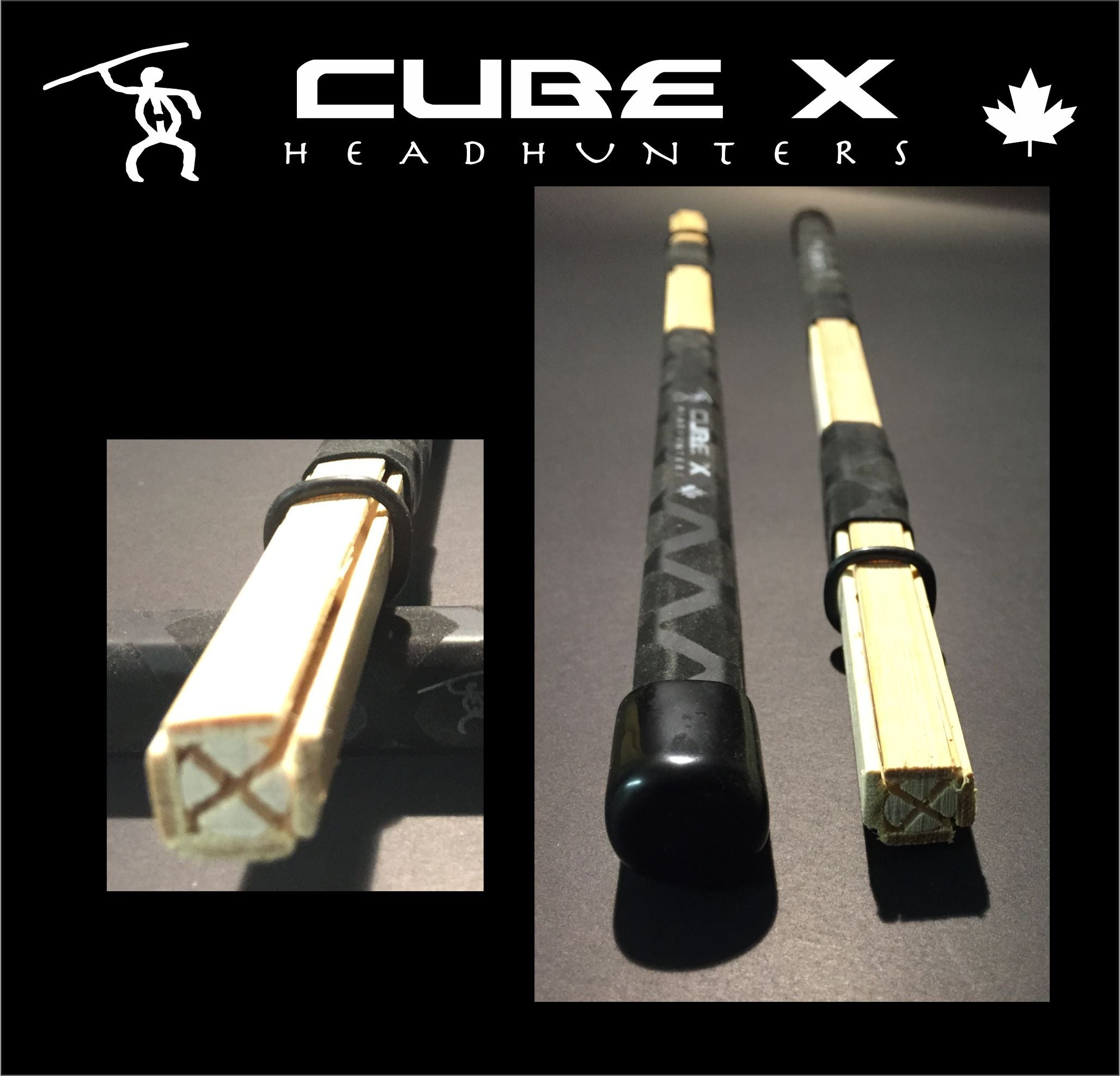 Cube-X are built on the Doobies platform of a double cut centre dowel. The big difference; the exterior 4 premium slatted bamboo surround the double split centre core. These are very tough. By leaving the outer skin on the bamboo, it has increased the strength and density. Where other bundled concepts may fail heavy hitters, these rugged sticks can take a beating! Although these are more dense and heavier, they still provide a quieter impact and make a great specialty stick.