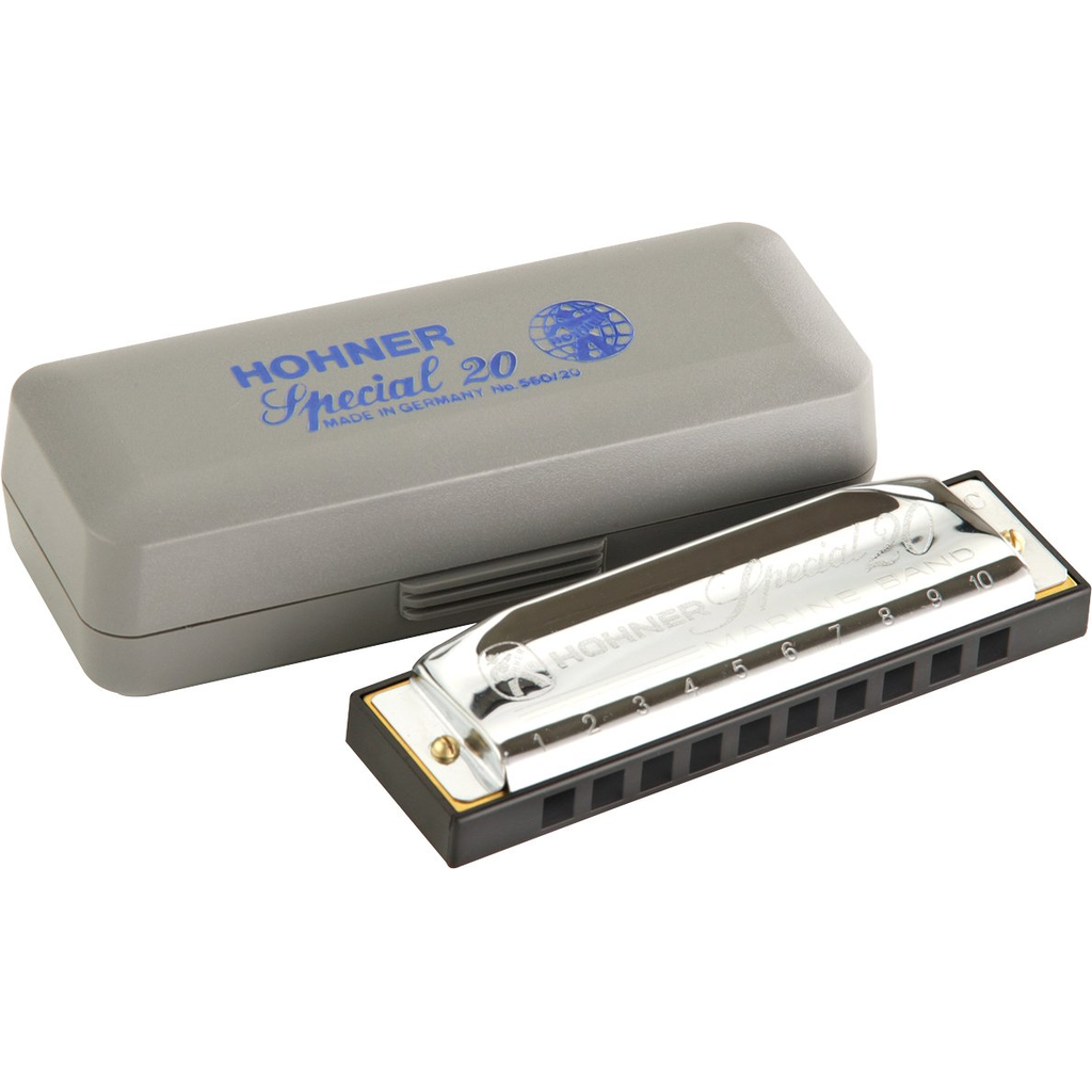 Please note: ALL Harmonicas are final sale A smooth "comfortable" feeling harmonica with genuine brass plates recessed in a plastic body. The Special 20 is an exceptionally warm-sounding airtight instrument with bolted on covers that comes in a hinged plastic case.