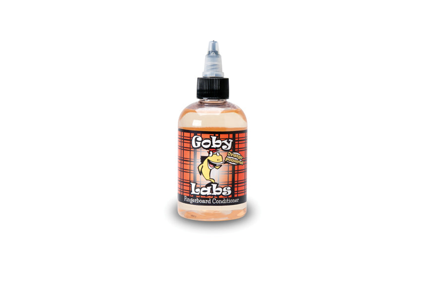 Goby Labs Fingerboard Conditioner is formulated to restore the natural beauty of your porous-wood fingerboard. Orange oil lifts finger grime from frets and fingerboard alike, making your guitar play as fast as the day you bought it. • Easy to use • Protects against drying, warping, and cracking • Ideal for rosewood, ebony, and pao ferro