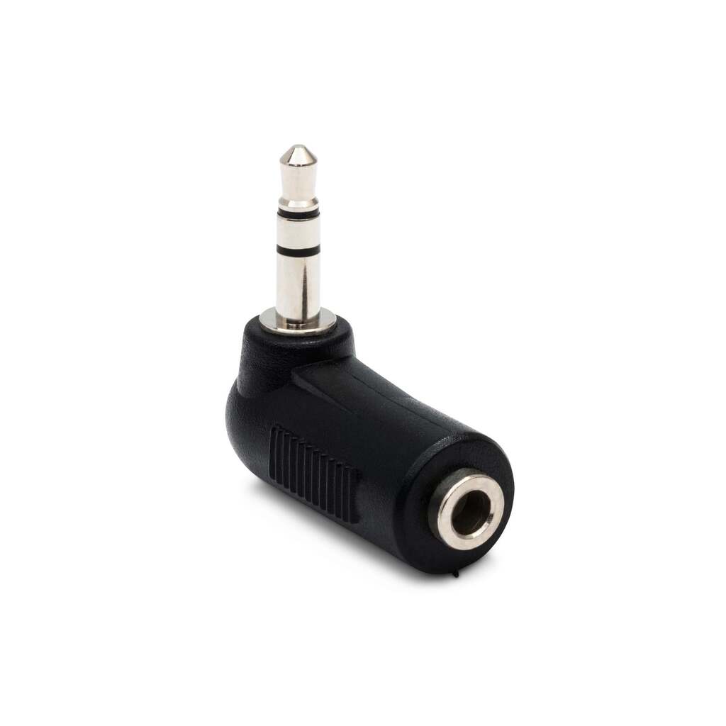 This adapter is designed to change the orientation of a mini stereo phone plug. It is right-angled for easy access to jacks with minimal clearance.