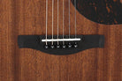 The Okoume back and sides generate a woody, warm tone when the guitar is played softly or finger-picked and provide punchy high-mids with a clear projection when strummed.