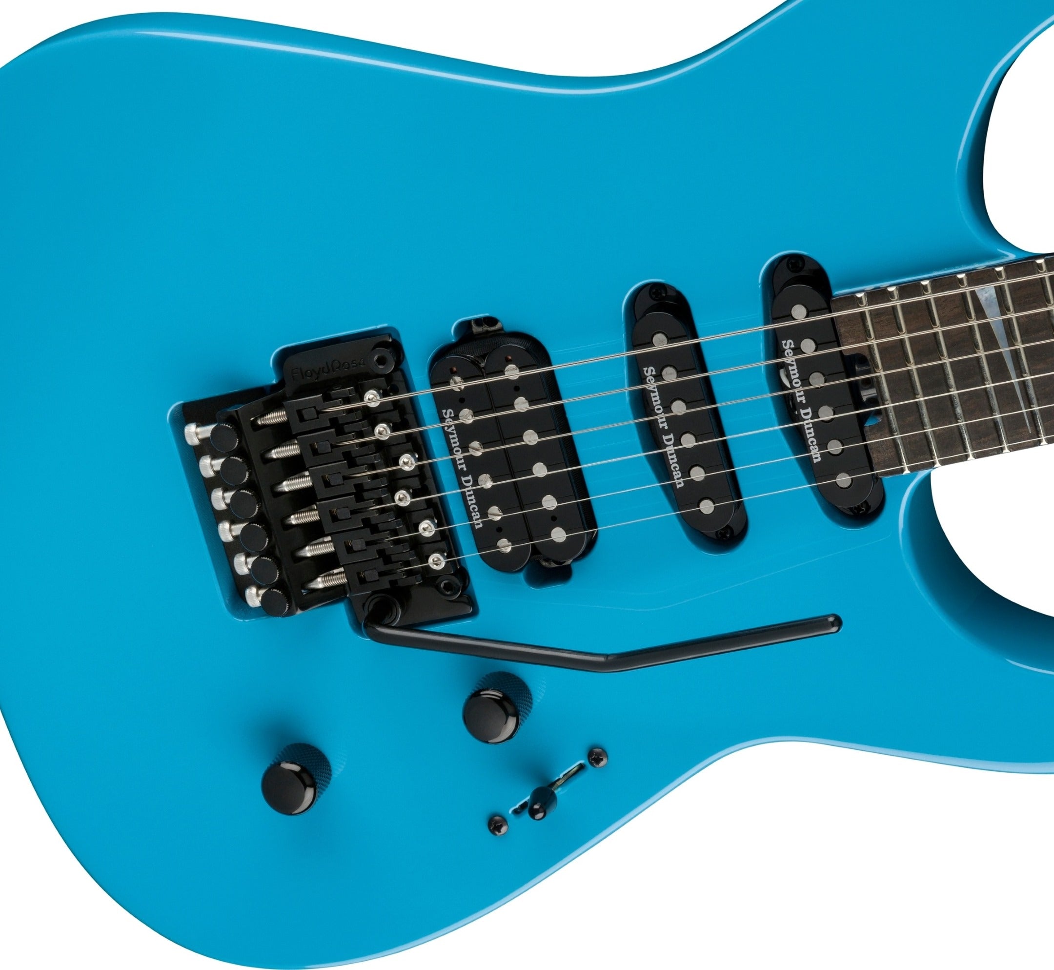 The HSS pickup configuration features a set of versatile Seymour Duncan® pickups that deliver tonal clout. The Seymour Duncan JB™ TB-4 bridge pickup roars with hot-rodded attitude and a powerful low end, while the Seymour Duncan Custom Flat Strat® SSL-6 RWRP Single-Coil middle and Seymour Duncan Custom Flat Strat® SSL-6 neck pickups radiate with glassy treble tone and scooped mids that perform well across a multitude of genres. Harness the sonic horsepower with a versatile five-way blade pickup switch and single volume and tone controls. Other premium features include a Floyd Rose® 1500 Series double-locking tremolo bridge system for reliable tuning stability throughout daring and aggressive playing theatrics, Gotoh® MG-T locking tuners and Dunlop® dual-locking strap buttons.