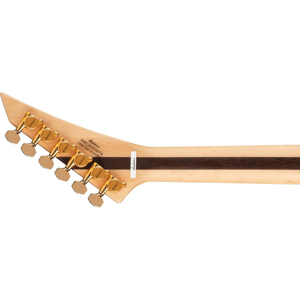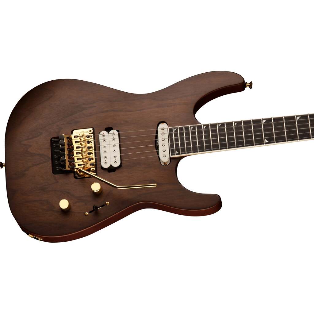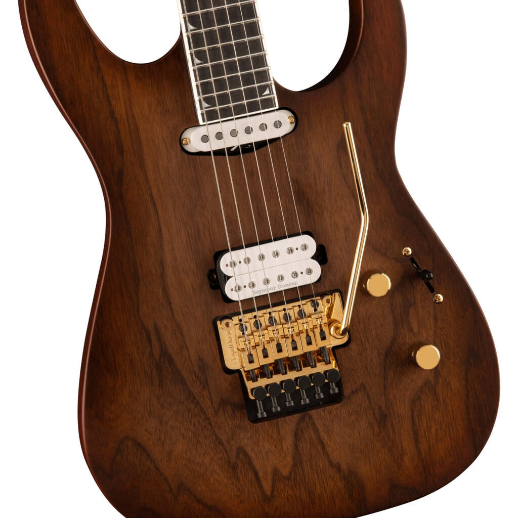 A stylishly contoured mahogany body with a walnut top and pure Jackson neck-through-body construction ensure ergonomic comfort during long sets along with monstrous sustain and smooth playing all the way up to the 24th jumbo fret. Graphite-reinforcement rods run through the three-piece maple/wenge/maple neck, protecting it against environmental depredations, while the satin finish gives that smooth-as-butter playing feel. The ultra-fast 12”-16” compound radius bound ebony fingerboard is built from the get-go for easy chording and riffing near the nut and rapid, fret-out-free leads as you move up the neck. Glow-in-the-dark Luminlay® side dots are also a game-changer for touring musicians, providing fretboard guidance even on the darkest of stages.