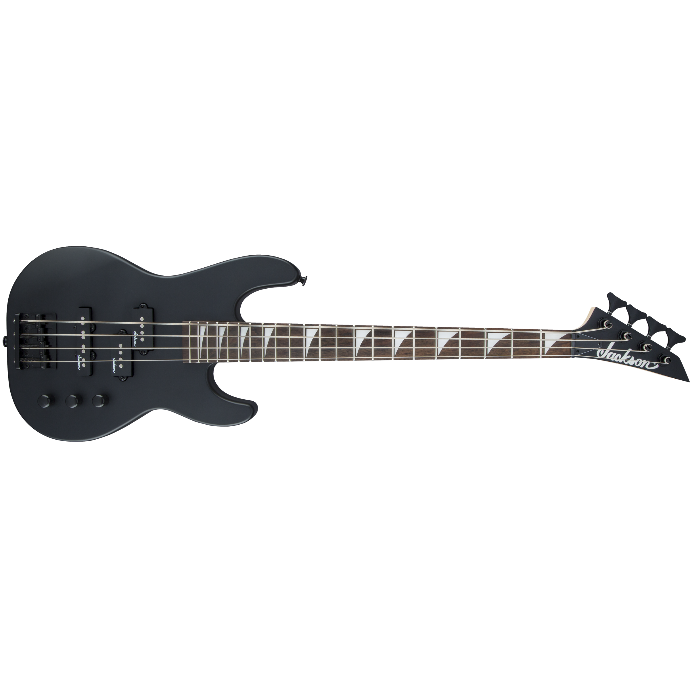 A Jackson P style neck pickup and Jackson J style bridge pickup power this 4-string bass, which also features a pair of volume knobs, single tone knob, hardtail bridge with black base plate and Jackson-branded tuners.