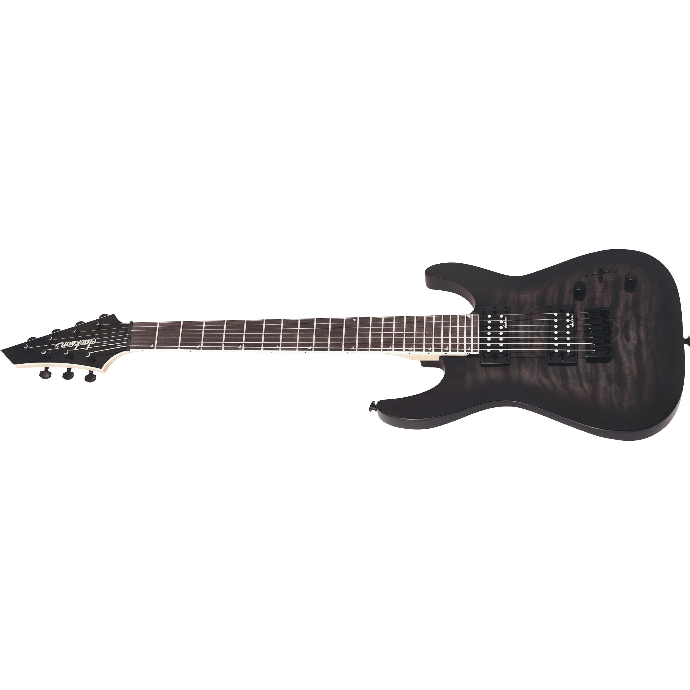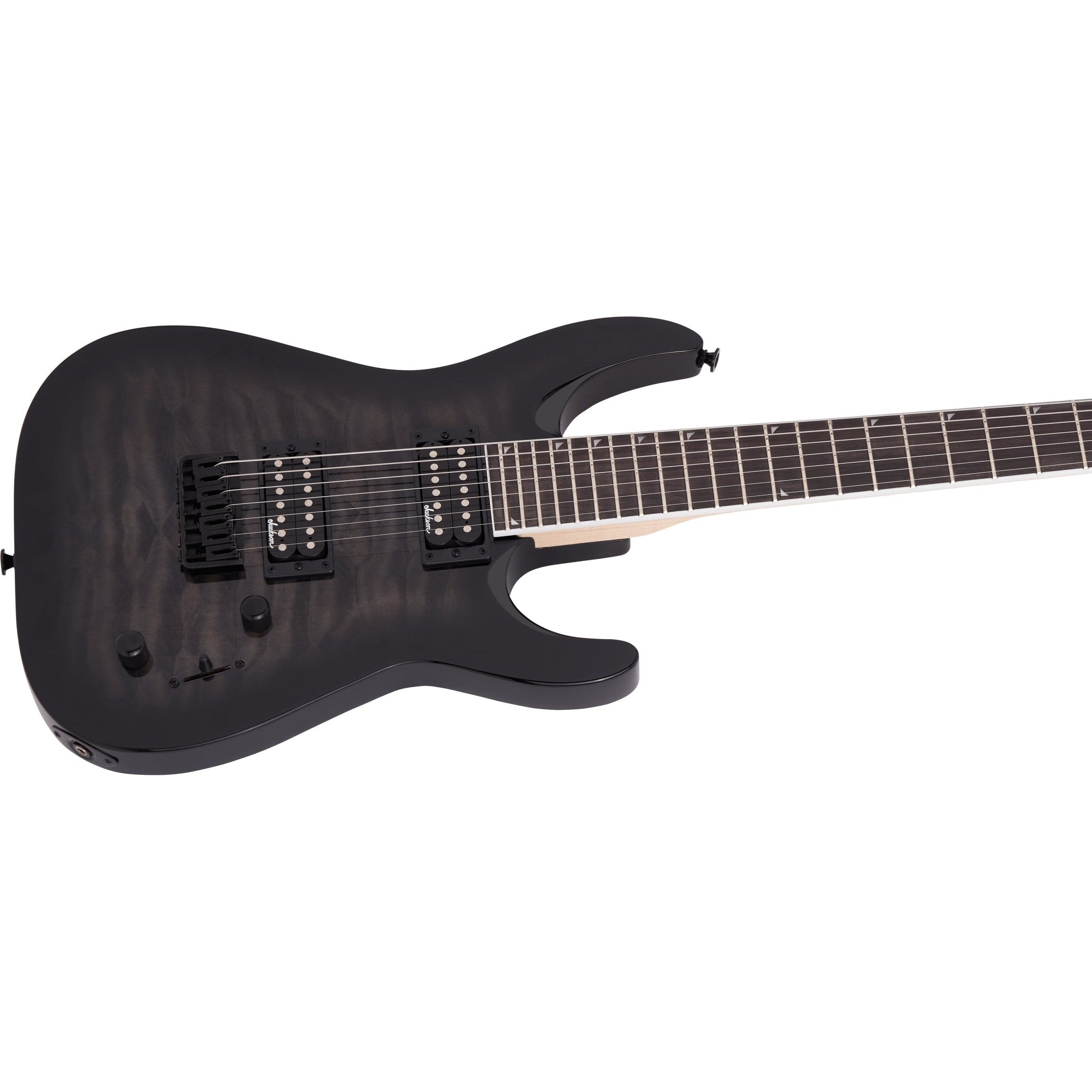 A formidable 7-string beast, the JS Series Dinky Arch Top JS22Q-7 DKA HT is wrapped in a brooding Transparent Black Burst finish with all-black hardware and our Jackson 3x4 AT-1 black headstock.