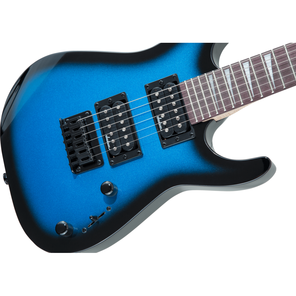 A pair of Jackson high-output humbucking pickups with ceramic magnets crank out clear tone with plenty of girth. The neck position delivers bright highs while the bridge adds plenty of crunchy distortion. Its versatile voice can be shaped with a three-way toggle switch and single volume and tone controls, while a string-through-body hardtail bridge with block saddles improves intonation and sustain.