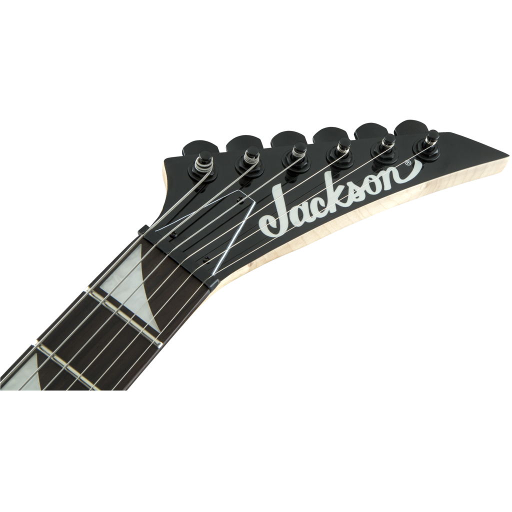 A pair of Jackson high-output humbucking pickups with ceramic magnets crank out clear tone with plenty of girth. The neck position delivers bright highs while the bridge adds plenty of crunchy distortion. Its versatile voice can be shaped with a three-way toggle switch and single volume and tone controls, while a string-through-body hardtail bridge with block saddles improves intonation and sustain.