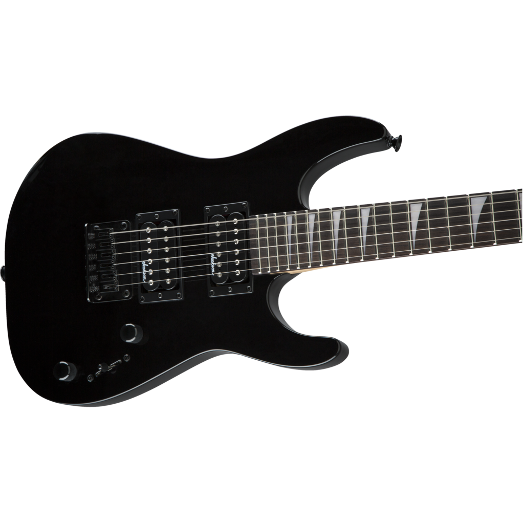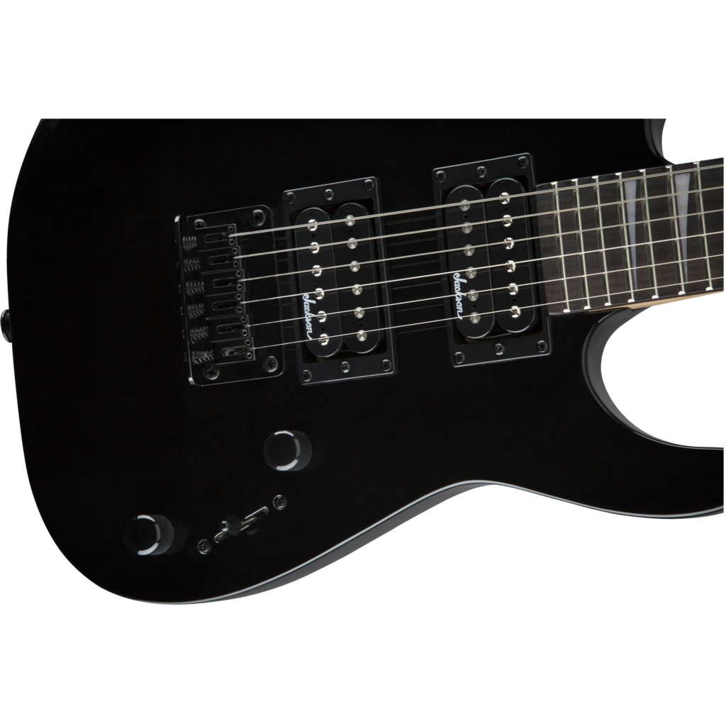 A pair of Jackson high-output humbucking pickups with ceramic magnets crank out clear tone with plenty of girth. The neck position delivers bright highs while the bridge adds plenty of crunchy distortion. Its versatile voice can be shaped with a three-way toggle switch and single volume and tone controls, while a string-through-body hardtail bridge with block saddles improves intonation and sustain.