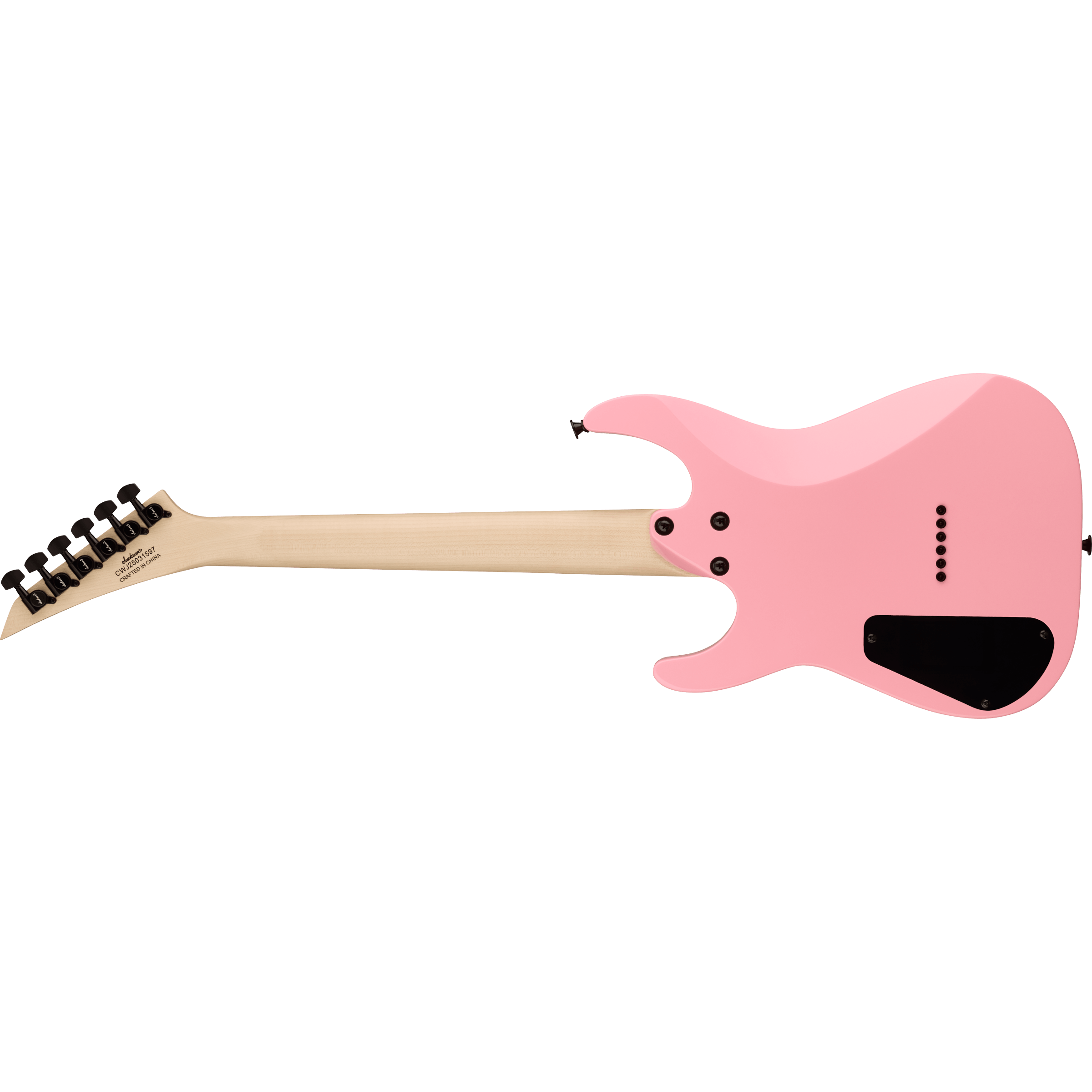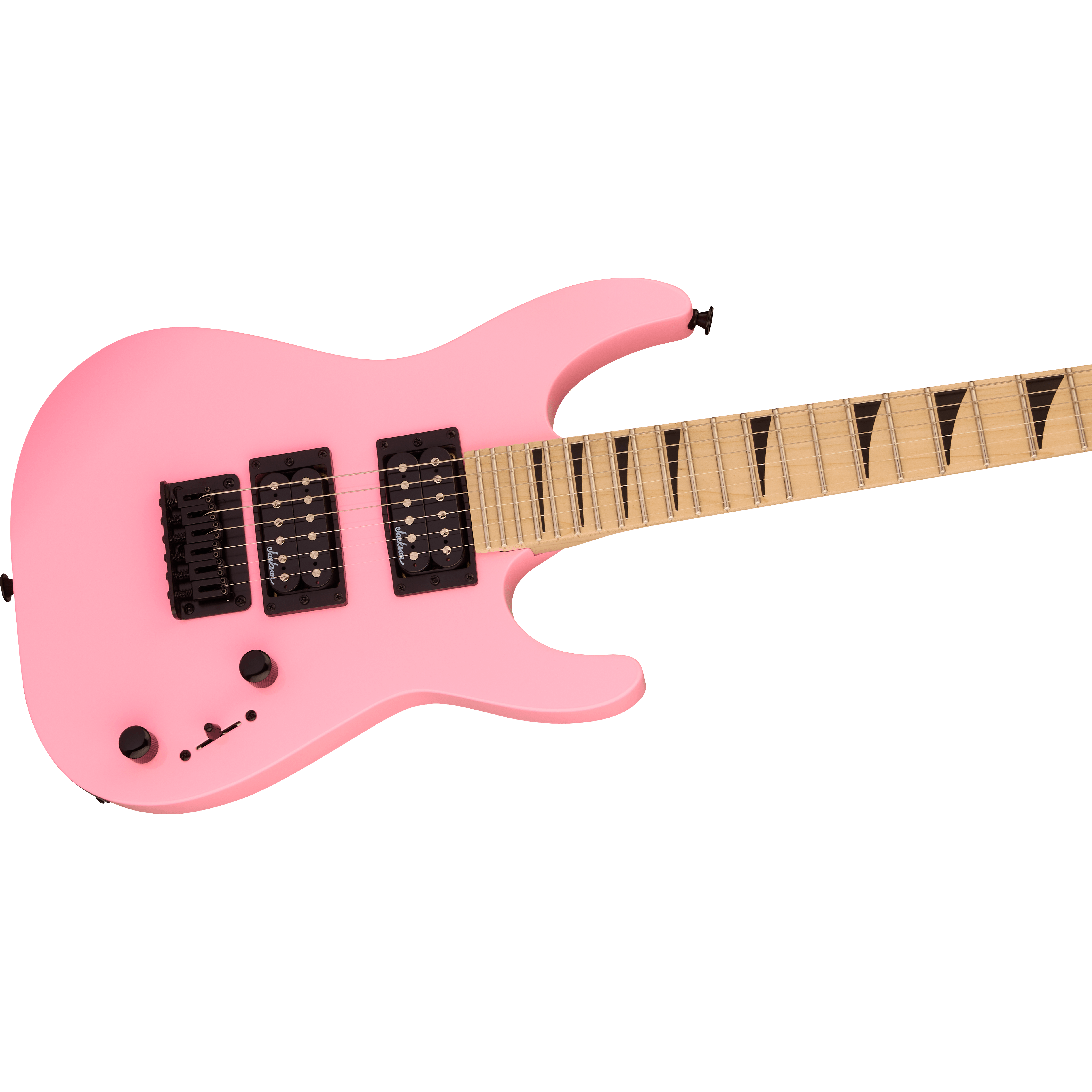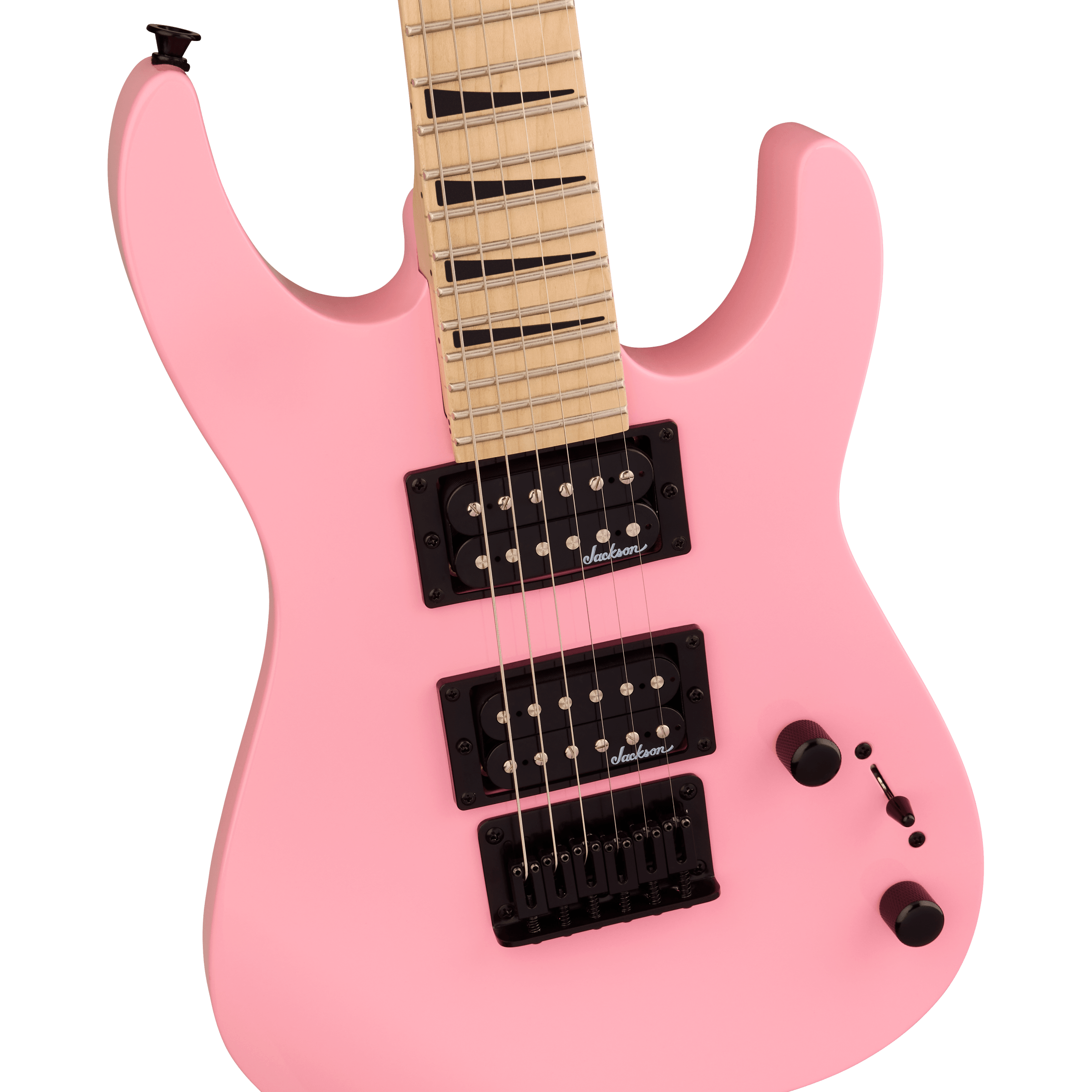A pair of Jackson high-output humbucking pickups with ceramic magnets crank out clear tone with plenty of girth. The neck position delivers bright highs while the bridge adds plenty of crunchy distortion. Its versatile voice can be shaped with a three-way toggle switch and single volume and tone controls, while a string-through-body hardtail bridge with block saddles improves intonation and sustain.