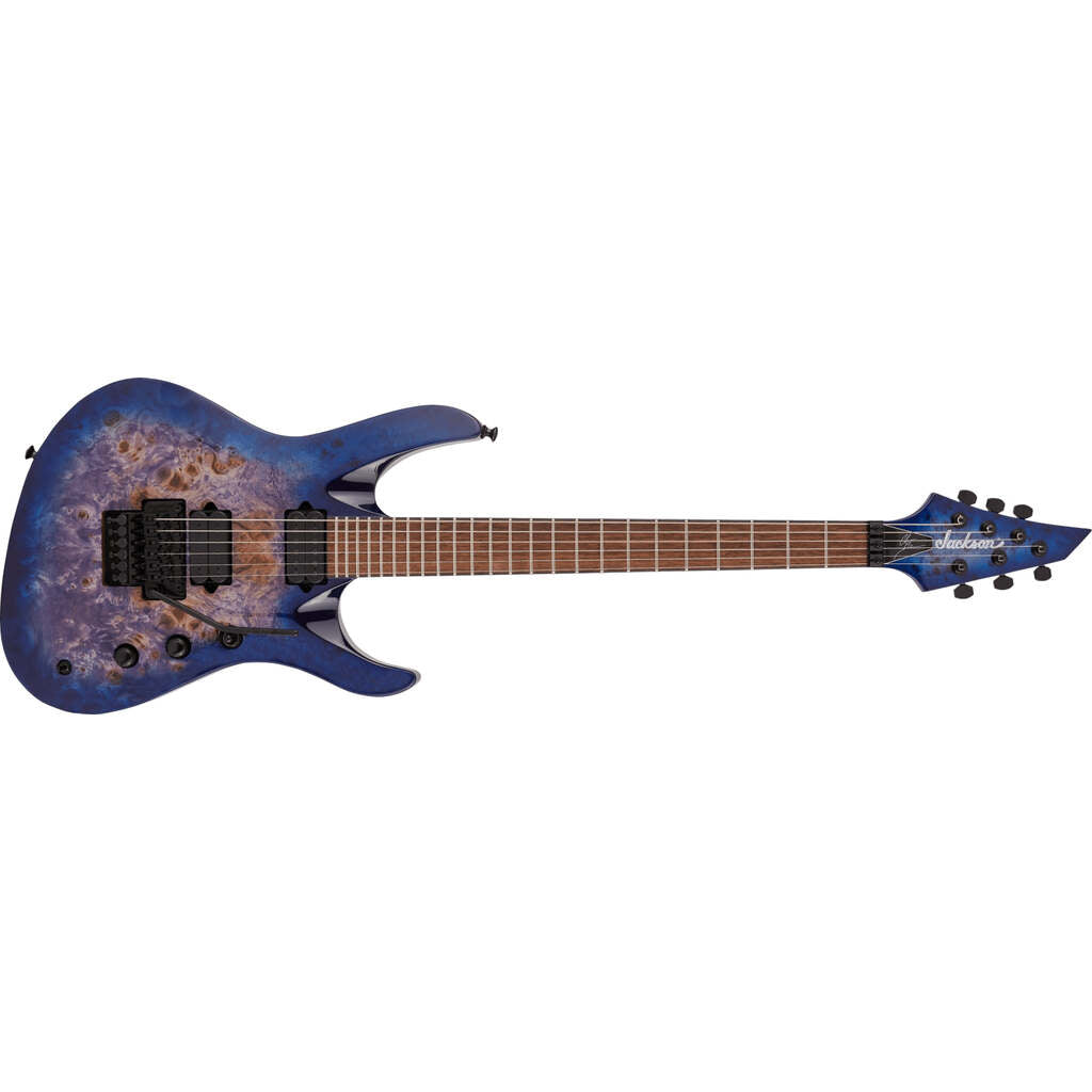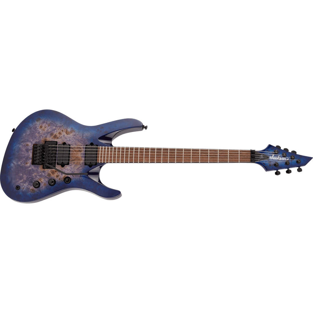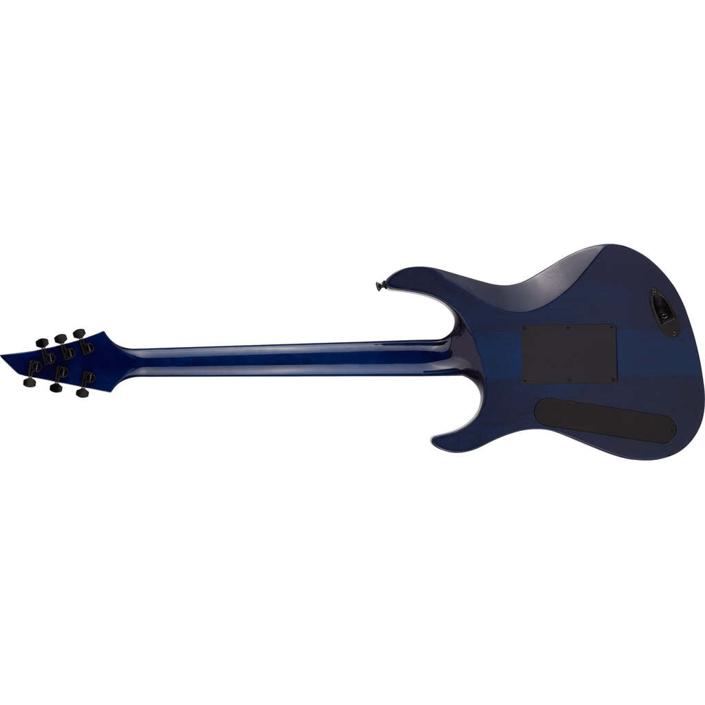 Wrapped in a stunning Transparent Blue finish with matching reverse Jackson AT-1 3x3 headstock and black hardware, this pedigreed metal machine is a force to be reckoned with.