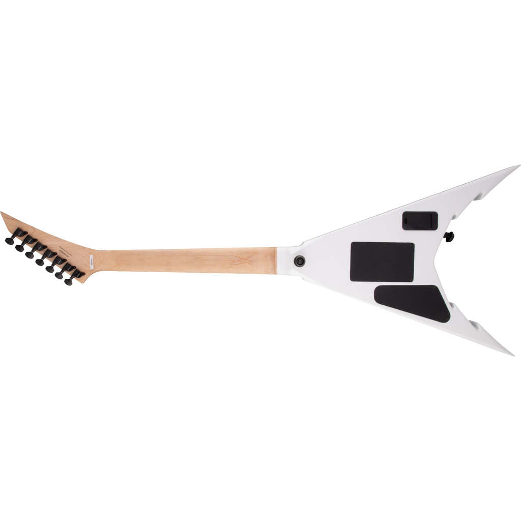 Ready to throttle stages at a moment's notice, the Pro Series Signature Corey Beaulieu King V KV7Q is blanketed in a vivid Winterstorm finish with reverse Jackson pointed 7-in-line matching tilt-back headstock, black headstock binding and black hardware.