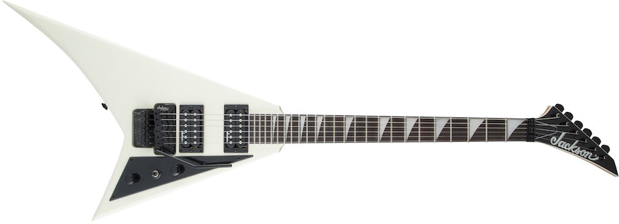 Other features include dual Jackson high-output humbucking pickups with ceramic magnets, single volume and tone controls, three-way toggle switch, a Jackson-branded Floyd Rose® double-locking tremolo bridge and sealed die-cast tuners.