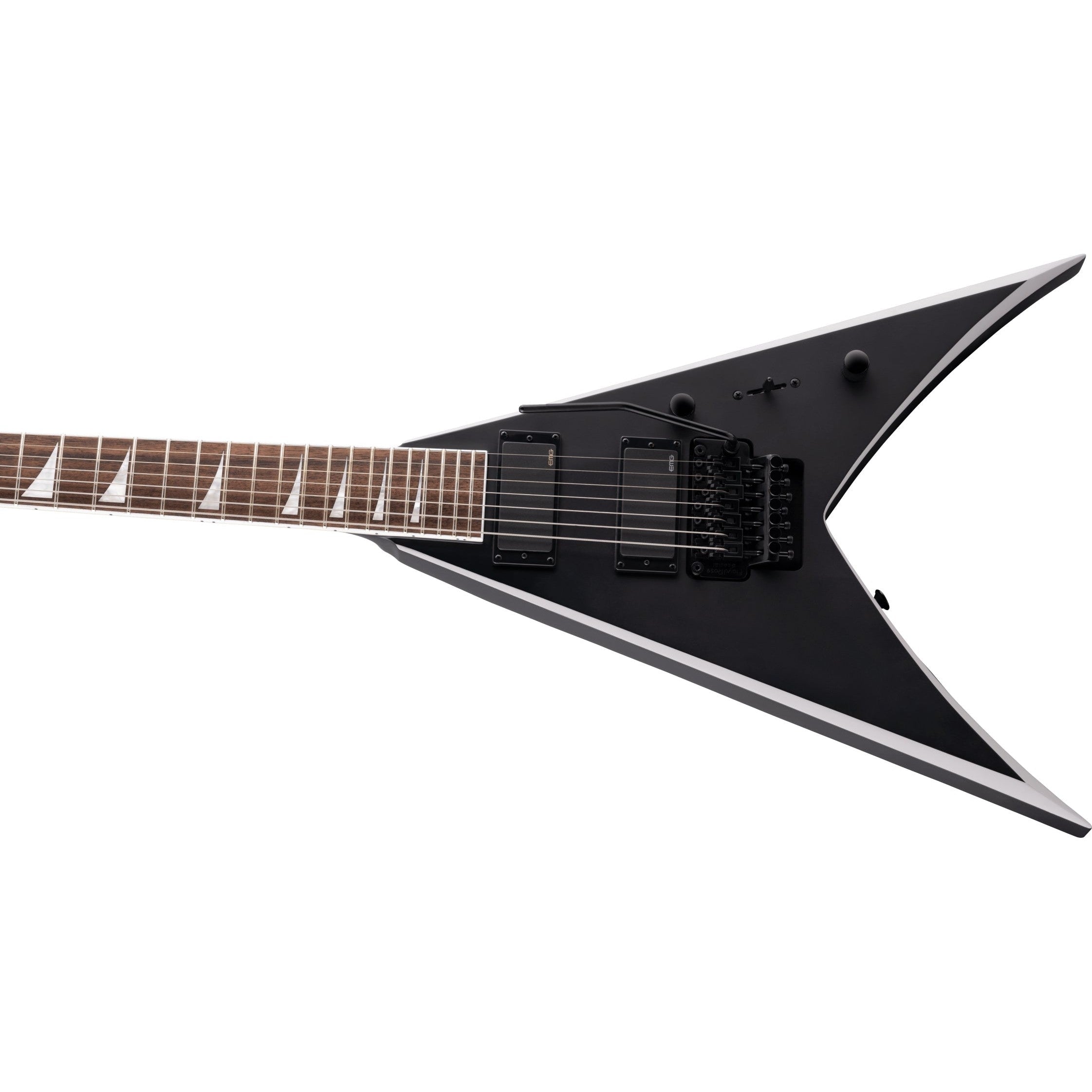 Designed for a more extended sonic palette, this 7-string pointy guitar features active EMG® 81-7H bridge and EMG® 85-7H neck humbucking pickups that blend powerful intensity, fluid sustain and muscular growl for blistering leads that slice through even the densest mix. Command your sound with three-way pickup blade switching and single volume and tone controls, and bank on rock-solid tuning stability throughout the most of aggressive dive bombs or harmonic squeals with the Floyd Rose® Special 7-string double-locking tremolo bridge system.
