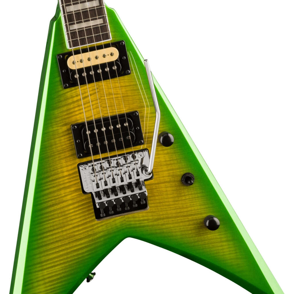 Equipped with Jackson® High-Output humbucking pickups and a Floyd Rose® Special double locking bridge, the "Baldini" delivers crushing tone and unbeatable sustain. The Jackson® pointed 6-in-line headstock and sealed die-cast tuners ensure rock-solid tuning stability.