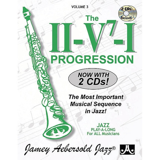 Now with a bonus second CD that contains individual ii/V7/I tracks for each major key (17 new practice tracks). The most important musical sequence in modern jazz! Contains all the needed scales and chords to each CD track and all are written in the staff. Contains 120 written patterns (transposed for all instruments) and three full pages of piano voicings that correspond to the CD. Contains a Scale Syllabus which allows you to find and use various substitute scales---just like professional musicians. The CD contains four tracks of Jamey playing exercises in a "call and response" fashion over an extended ii/V7/I progression that stays in one key at a comfortable tempo. Allows you to practice major, minor, dom. 7th, diminished, whole tone, half-diminished, Lydian, and dim. whole tone scales and chords. Beginning/Intermediate level. Suggested prerequisites: Volumes 1 and 2. Titles: ii/V7/I All Major Keys * G Minor Blues * Bebop Tune * V7+9/I All Keys * ii/V7/I in Three Keys * F Blues with 8-Bar Bridge * II/V7 Random Progressions * ii /V7+9/I All Minor Keys.