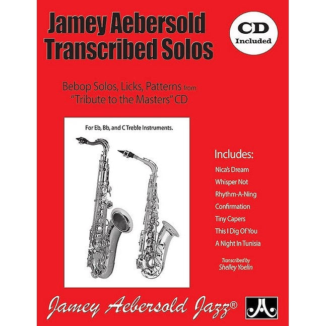 Transcribed from Bobby Shew's Tribute to the Masters album. A unique book and CD of Jamey's jazz solos over well-known standards, including analysis and quintessential licks and patterns derived from the solos. Solos are over these charts: Nica's Dream * Whisper Not * Rhythm-A-Ning * Confirmation * Tiny Capers * This I Dig of You * A Night in Tunisia. All solos are transposed for B-flat, E-flat, and C instruments. Includes the Tribute to The Masters CD!