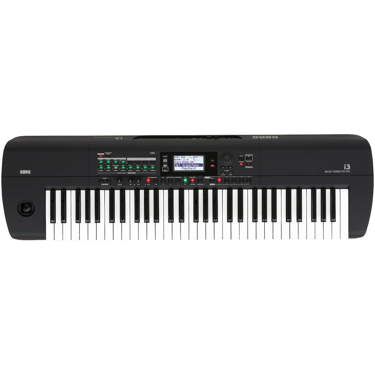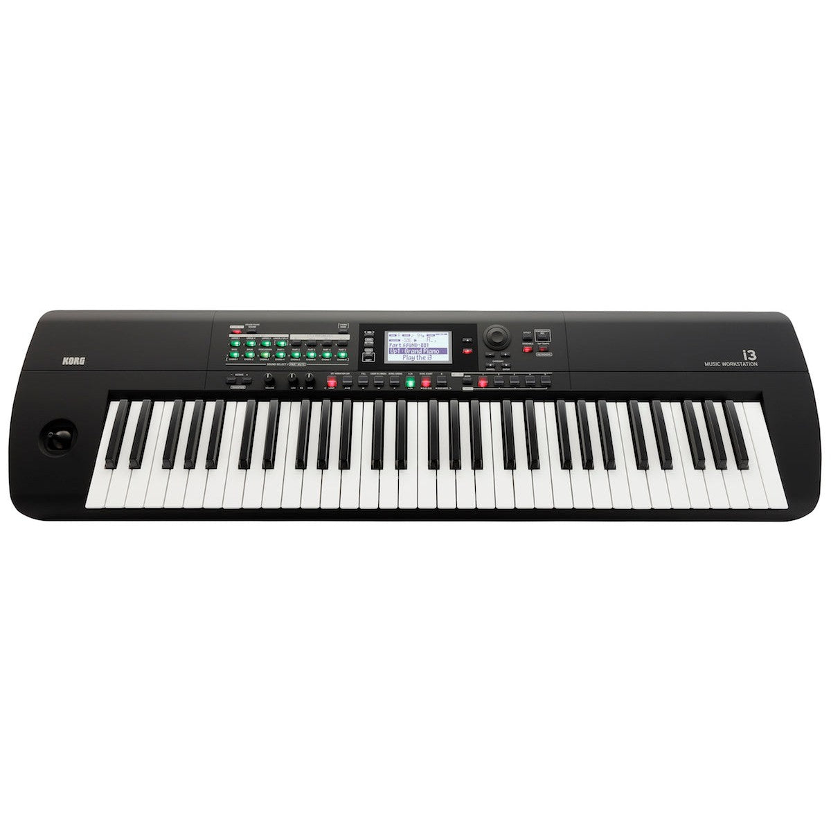 Inspiring, Intuitive, and Instant With the i3 Music Workstation, your musical themes and phrases catch fire and quickly explode into complete ready-to-play productions. Grouping sounds, beats, and parts together by Sound Set and Style Performance Set streamlines the creative process, providing a shortcut to choosing the right sounds and pulling together the right beats and grooves. On-board effects and EQ tailor the sound for any performance. The sequencer records, saves, and plays both MIDI and audio files – you can even play along. Self-contained, simple to use, and fun to play, the i3 is the ideal synth for the budding composer, the energetic performer, or the inspired up-and-coming producer. Using battery power, the KORG i3 Music Workstation can run wherever you run; a convenient auto-power off function preserves battery life. Form Follows Function The KORG i3 is a full-featured Workstation featuring 61 full-size, velocity-sensing keys. The keyboard response is adjustable using the three touch-curves; a fourth setting provides a fixed output level. OCTAVE buttons shift the pitch of the keyboard up or down by two octaves, in octave increments. The professional joystick allows real-time articulation of pitch bend, vibrato, and brilliance during performance; an additional two-band EQ (Low and High) provides a final adjustment to the overall tone. All front panel buttons and controls are conveniently grouped together by function, and the custom backlit LCD delivers valuable visual feedback regarding the instrument’s current settings. A rotary data-wheel encoder can quickly edit the value of the onscreen parameters. The black-out finish, rubberized touch surface, and perforated end panels reflect the distinctive upscale design.