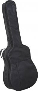 600 denier polyester economy acoustic guitar gig bag with ½" foam padding and headliner lining. Bag features accessory pocket and shoulder strap. Inside dimensions: 43" x 16".