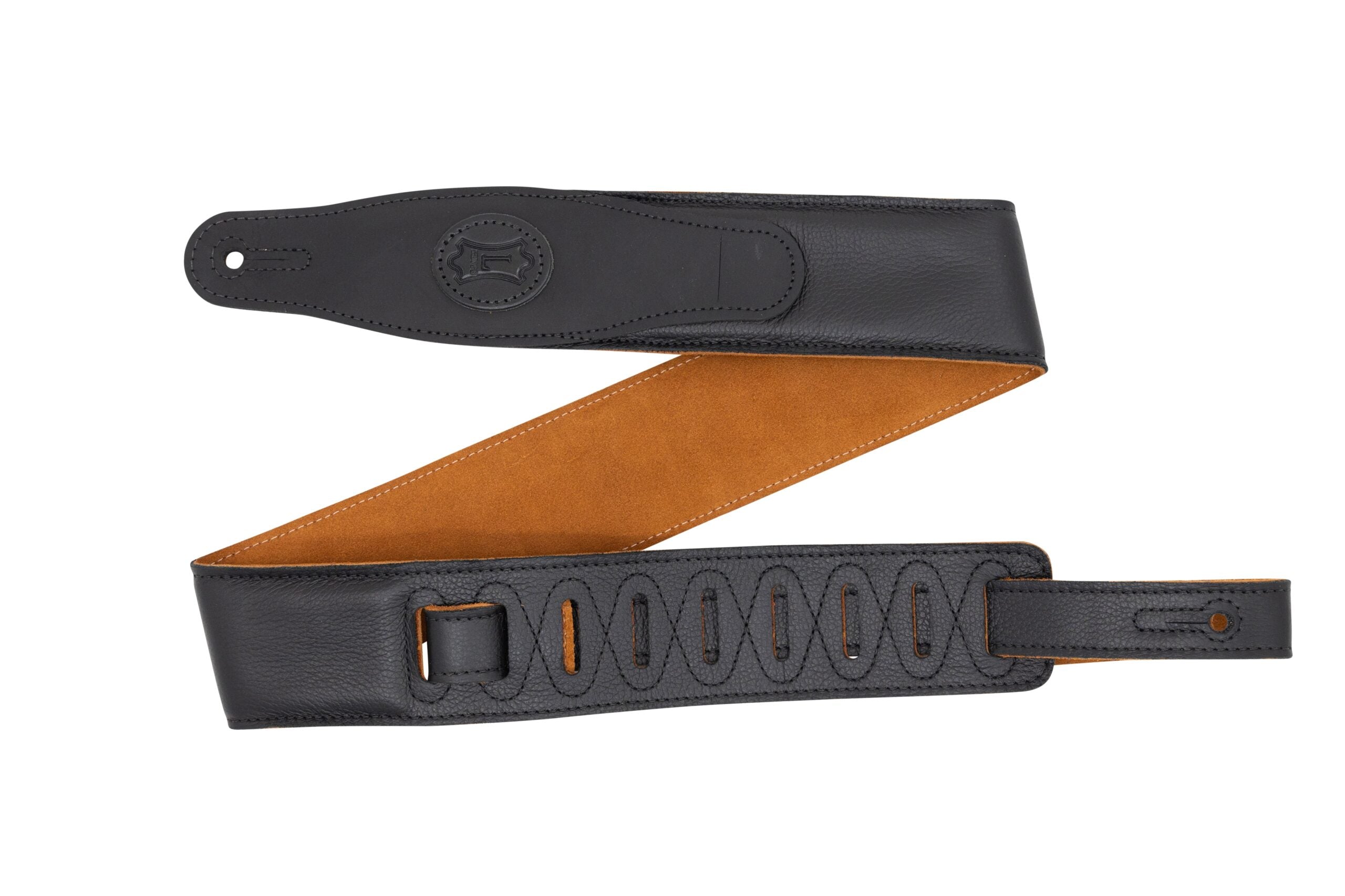 - 2.5″ Black Padded Garment Leather Guitar Strap with Honey Suede Backing