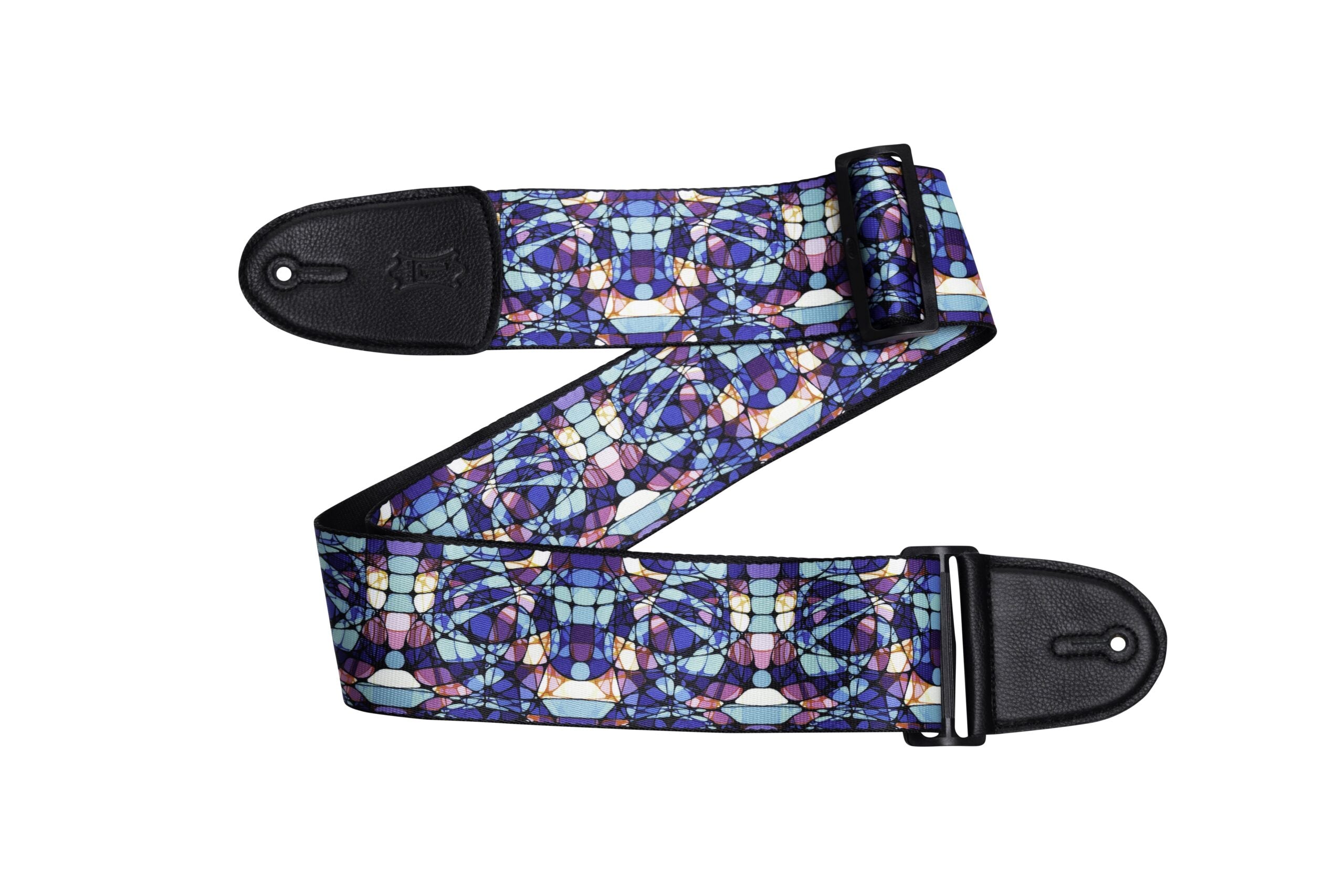 - Levy’s 3″ Wide Polypropylene Guitar Strap With Stained Glass Design In Blue Mirage