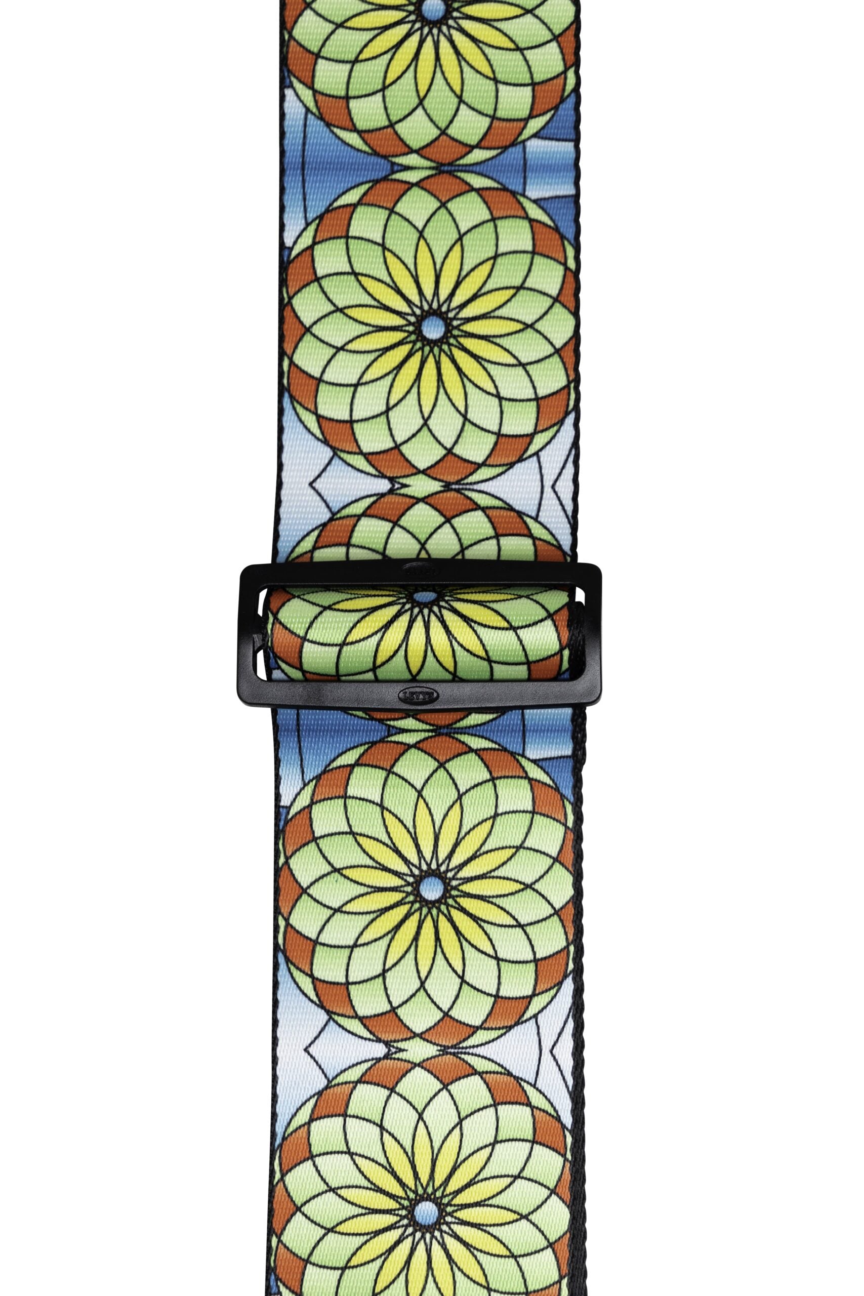 - Levy’s 3″ Wide Polypropylene Guitar Strap With Stained Glass Design In Spring Bloom