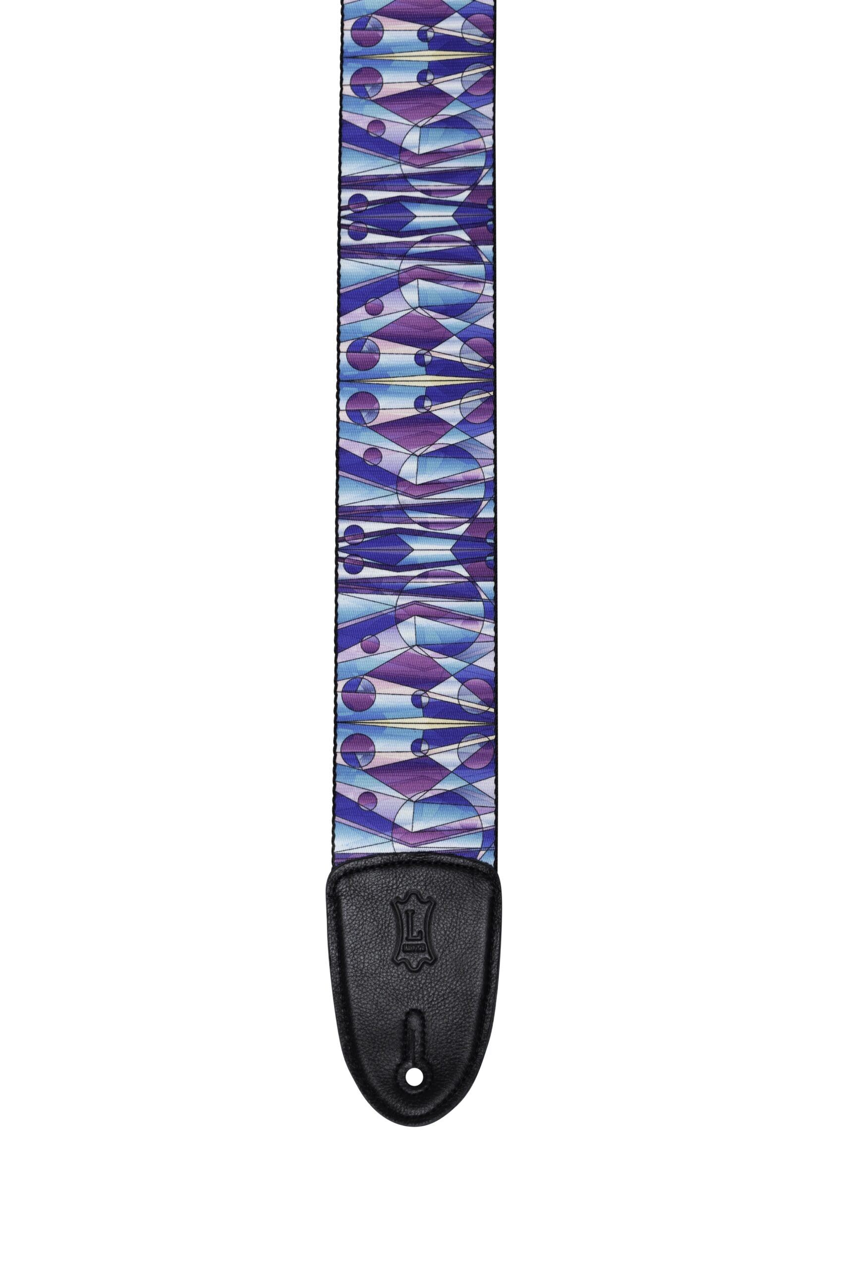 - Levy’s 3″ Wide Polypropylene Guitar Strap With Stained Glass Design In Kaleidoscope Purple