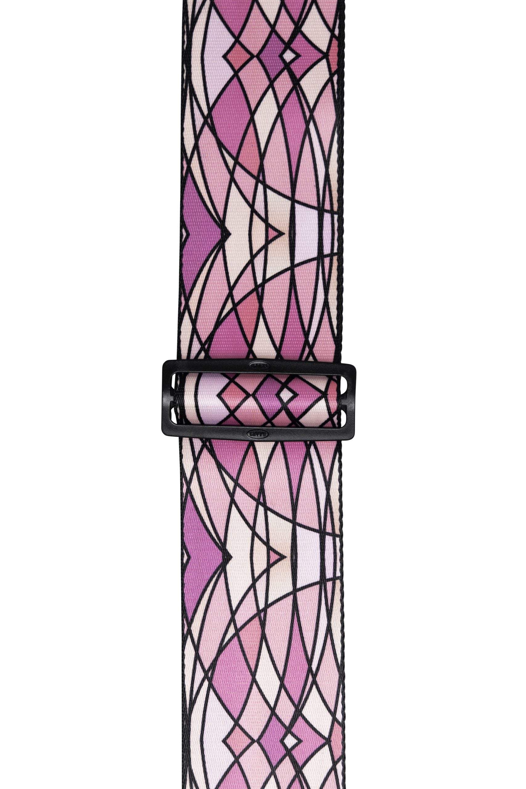 - Levy’s 3″ Wide Polypropylene Guitar Strap With Stained Glass Design In Pink