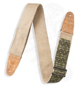Levy’s 2″ hemp ‘vegan’ guitar strap with printed illuminati design on natural hemp webbing with 2-ply cork ends.