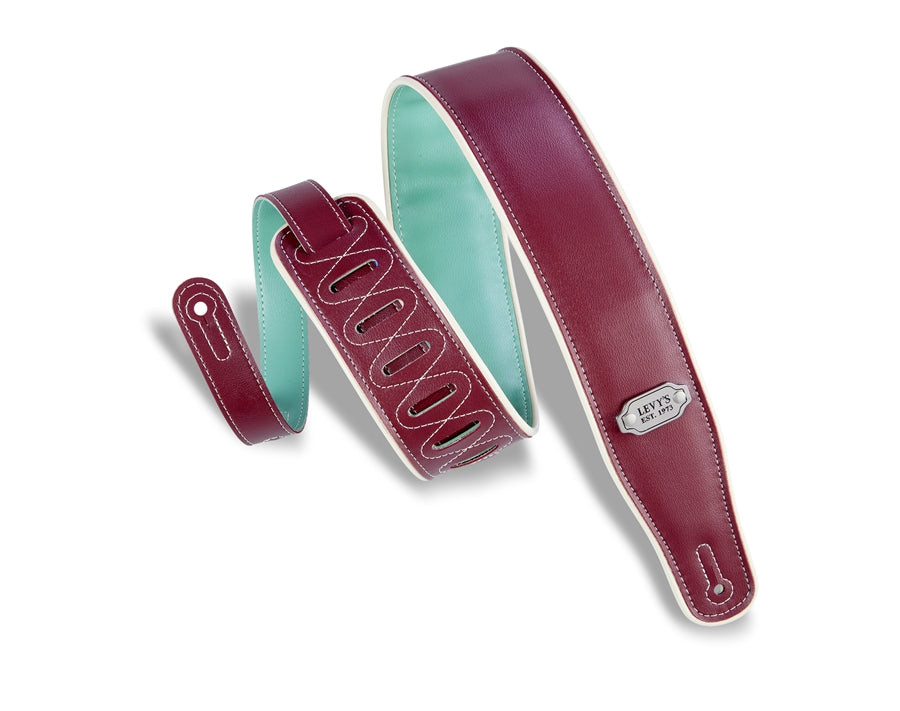 Levy’s 2 3/4″ wide burgundy vinyl guitar strap.