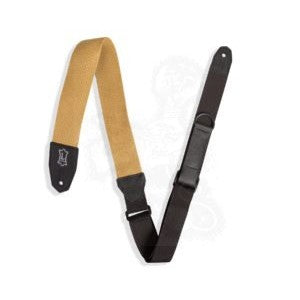 3 inch Right Height Tan Cotton Leather Guitar Strap Featuring RipChord Technology™ for Easy Adjust. Black Webbing And Leather With Polyester Webbing Adjustable From 43 to 57 inches.