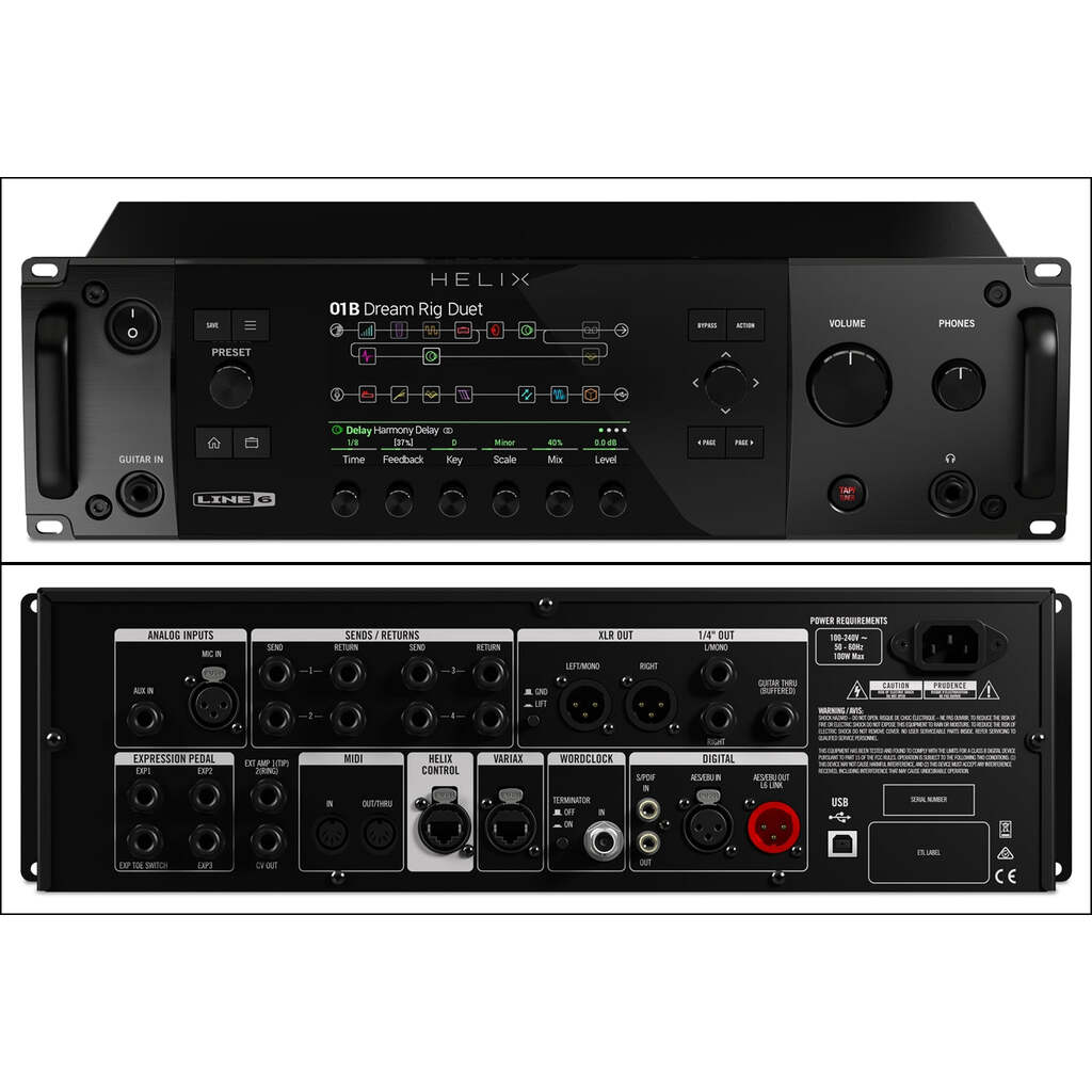 Dual DSP-powered HX modeling engine with 4 discrete stereo signal paths, 45 amps, 30 cabs, 16 mics and 70 effects Imports 3rd party 1024/2048 cab IR’s (impulse responses) Large 6.2 inch 800x480-pixel LCD display Extensive I/O for seamless integration with your entire rig - 10 inputs 12 outputs (including four fx loops), plus 8-in/8-out USB audio interface Up to 3 expression pedals, expression toe switch input, CV/Expression out, external amp switching and deep MIDI control AES/EBU and SPDIF digital I/O with Wordclock sync Industry-leading 123dB of dynamic range on the guitar input, for tremendous depth and ultra-low noise Tour Grade construction – 3RU rack enclosure with optional foot-based controller