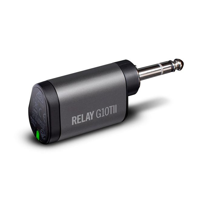 The Relay® G10TII wireless transmitter is compatible with the Relay G10 and Relay G10S instrument wireless systems and the POD® Go Wireless amp and effects processor—as well as Line 6® Spider® V 60, 120, 240, and 240HC amplifiers (both original and MkII versions) and Yamaha® THR®-II Wireless amplifiers. Simply plug the G10TII into your instrument, and play—it’s that easy. The G10TII transmitter has a rechargeable internal battery that provides up to seven hours of playing time. To recharge the battery, plug the transmitter into a G10 or G10S guitar wireless receiver or the input of one of the above amps.