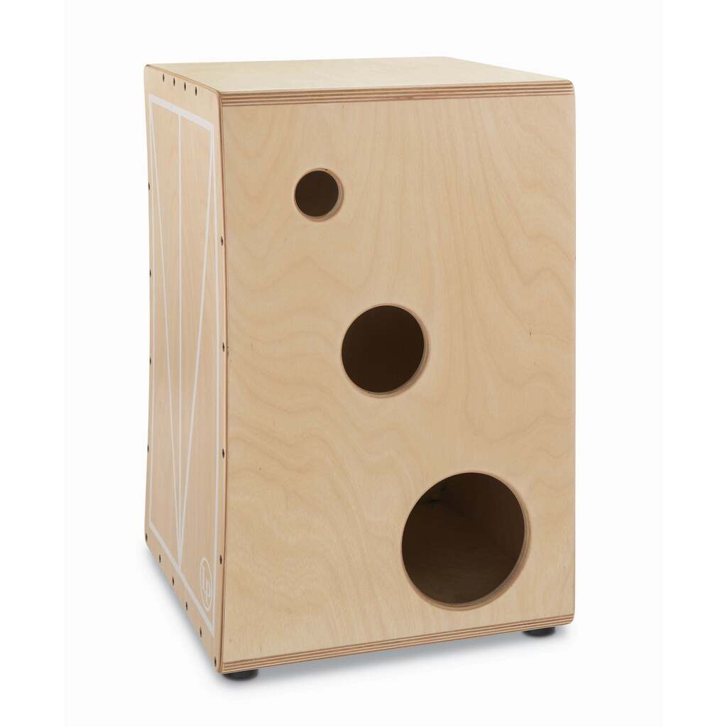 The Mona Tavakoli box cajon features dual playing surfaces, a birch body and birch, Peruvian-style soundboards. Also offers Mona's graduated, proprietary three-sound hole design.