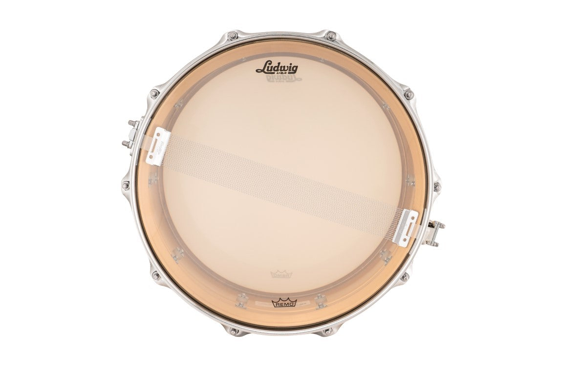 Bronze has been at the core of fine percussion making for centuries- cymbals, bells, trumpets, trombones, gongs, tympani and, of course, snare drums. Bronze is created from a blend of Copper and Tin- this gives bronze snares a warmer, wood-like overall tone but with all the aggressive attack and presence of its Brass counterpart. Ludwig’s 1.2mm shell is made from a single sheet of bronze that is machine drawn into a seamless, beaded shell, is then polished, and outfitted with either Imperial or Tube Lugs. All snares come with a P88 Throw, and 2.3mm Triple-Flange hoops.