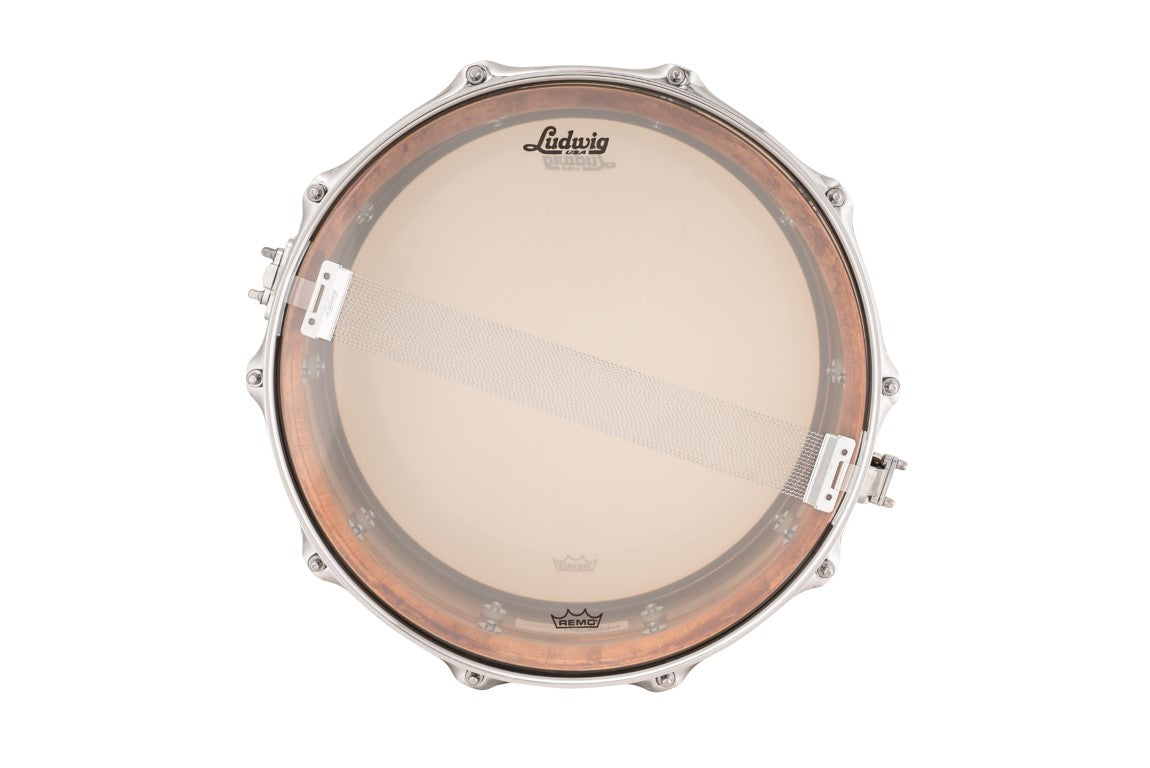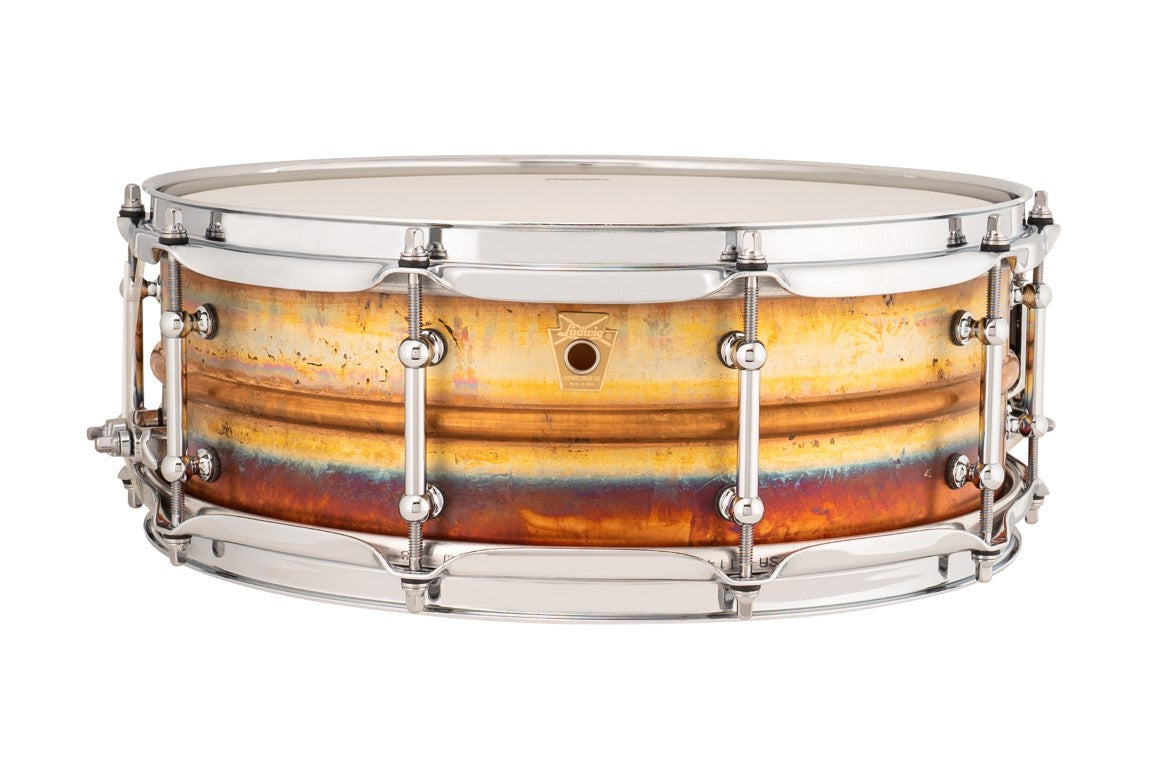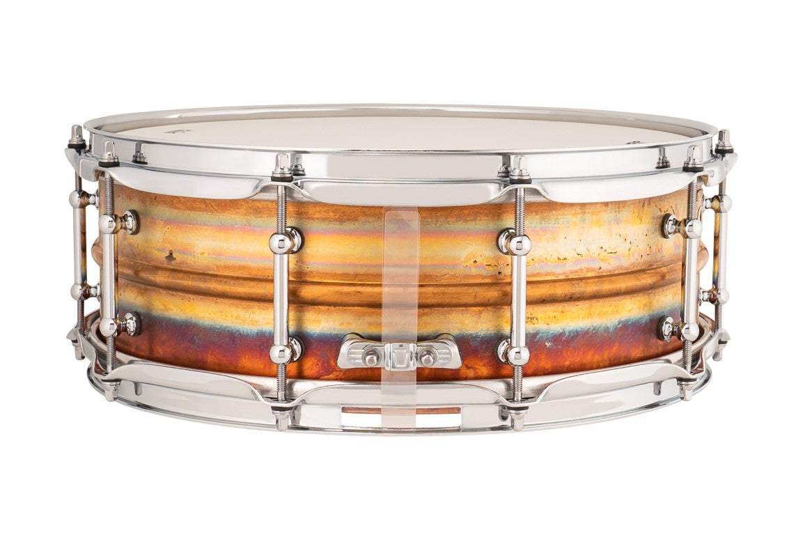 Bronze has been at the core of fine percussion making for centuries- cymbals, bells, trumpets, trombones, gongs, tympani and, of course, snare drums. Bronze is created from a blend of Copper and Tin- this gives bronze snares a warmer, wood-like overall tone but with all the aggressive attack and presence of its Brass counterpart. Ludwig’s 1.2mm shell is made from a single sheet of bronze that is machine drawn into a seamless, beaded shell, and left in it’s natural, raw state, then outfitted with either Imperial or Tube Lugs. All snares come with a P88 Throw, and 2.3mm Triple-Flange hoops.